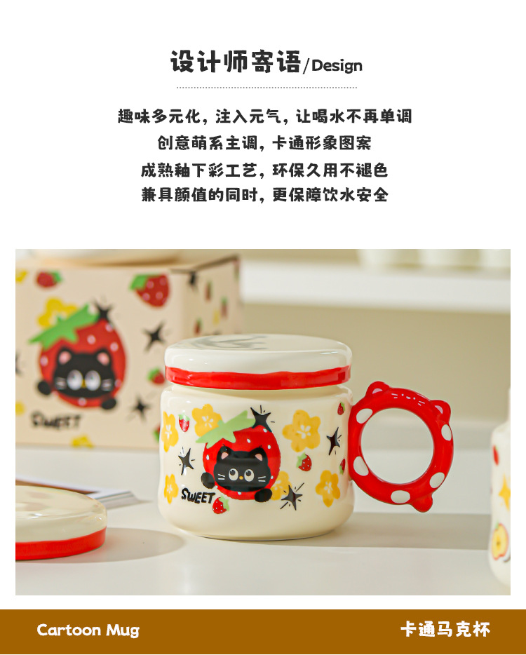 Regalo de cumpleaños Taza de dibujos animados para novias Taza de cerámica con tapa Regalo de mano Taza de agua para gatos lindos