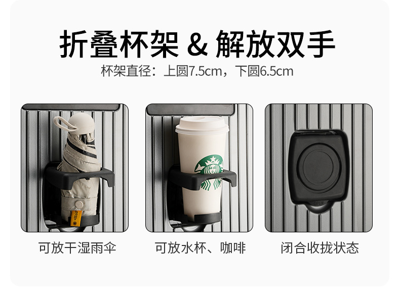 | Función | Protector solar, gancho, resistente al desgaste, soporte para teléfonos móviles, resistente a los arañazos, no es fácil de desvanecerse, se puede embarcar, separación seca y húmeda, con soporte de tazas |