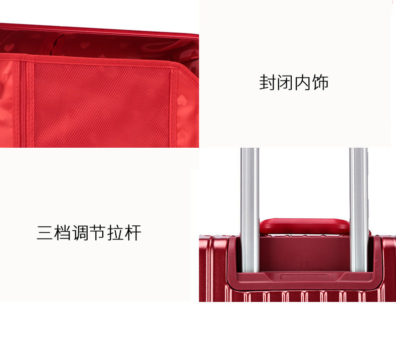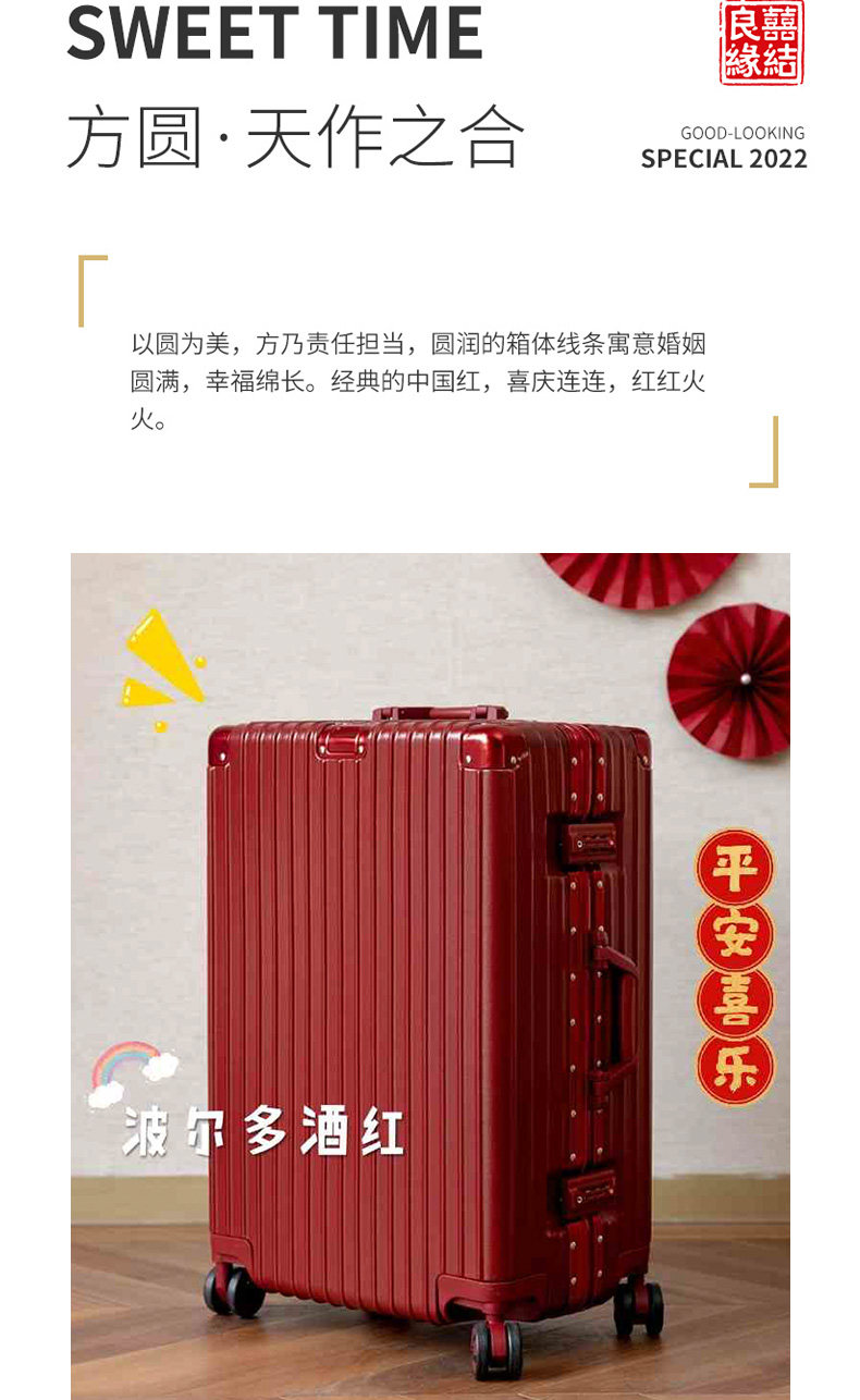Caja de la dote del equipaje de la boda caja de la carretilla roja caja de cuero femenino de presión caja de la contraseña de la boda novia dote vino rojo