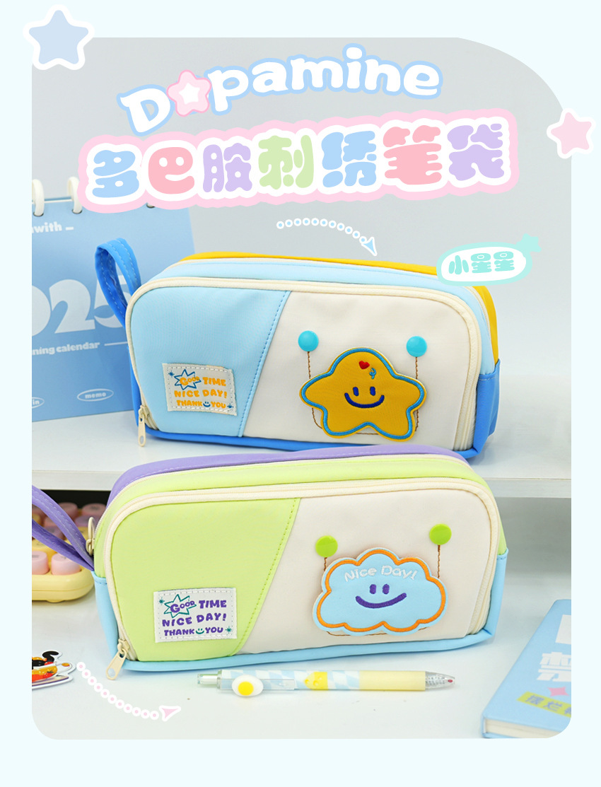 Nuevo estuche para lápices con parche de color en contraste, estuche para lápices portátil de gran capacidad para estudiantes, macaron, estuche para lápices de papelería de alto valor coreano, estuche para lápices