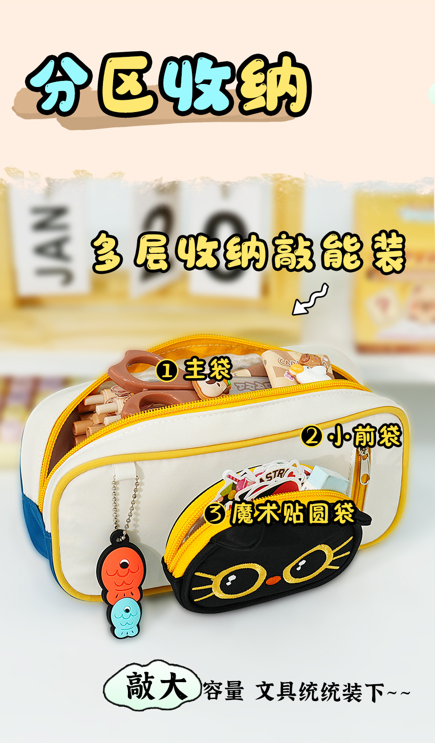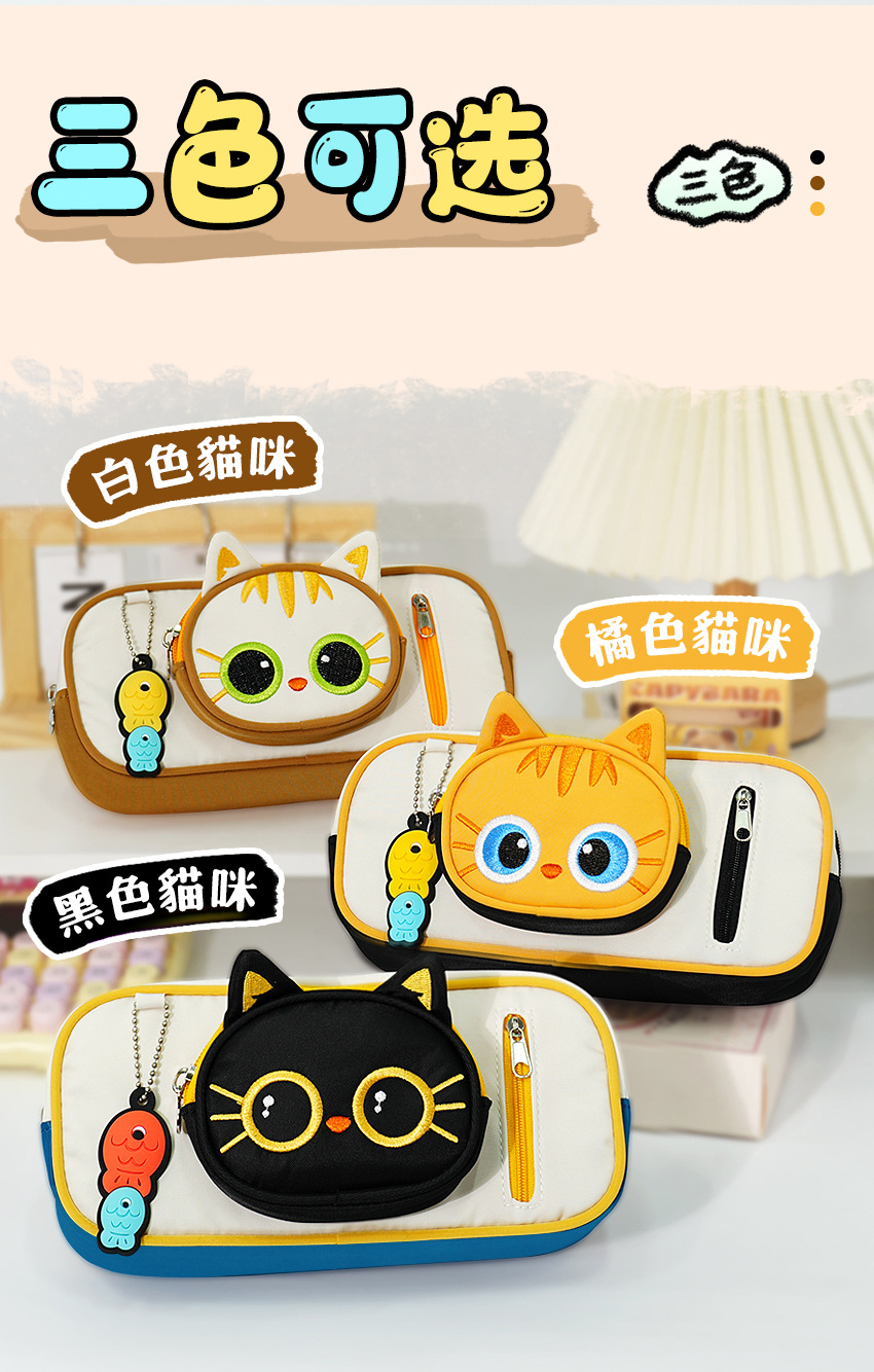 Estuche para lápices de gato de dibujos animados lindo Estuche para papelería para estudiantes Estuche para lápices de gran capacidad y alto valor para niños y niñas Estuche para lápices de papelería