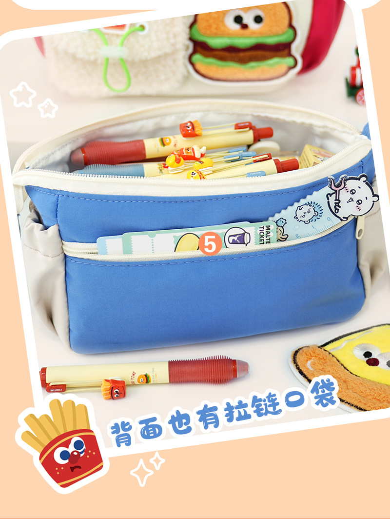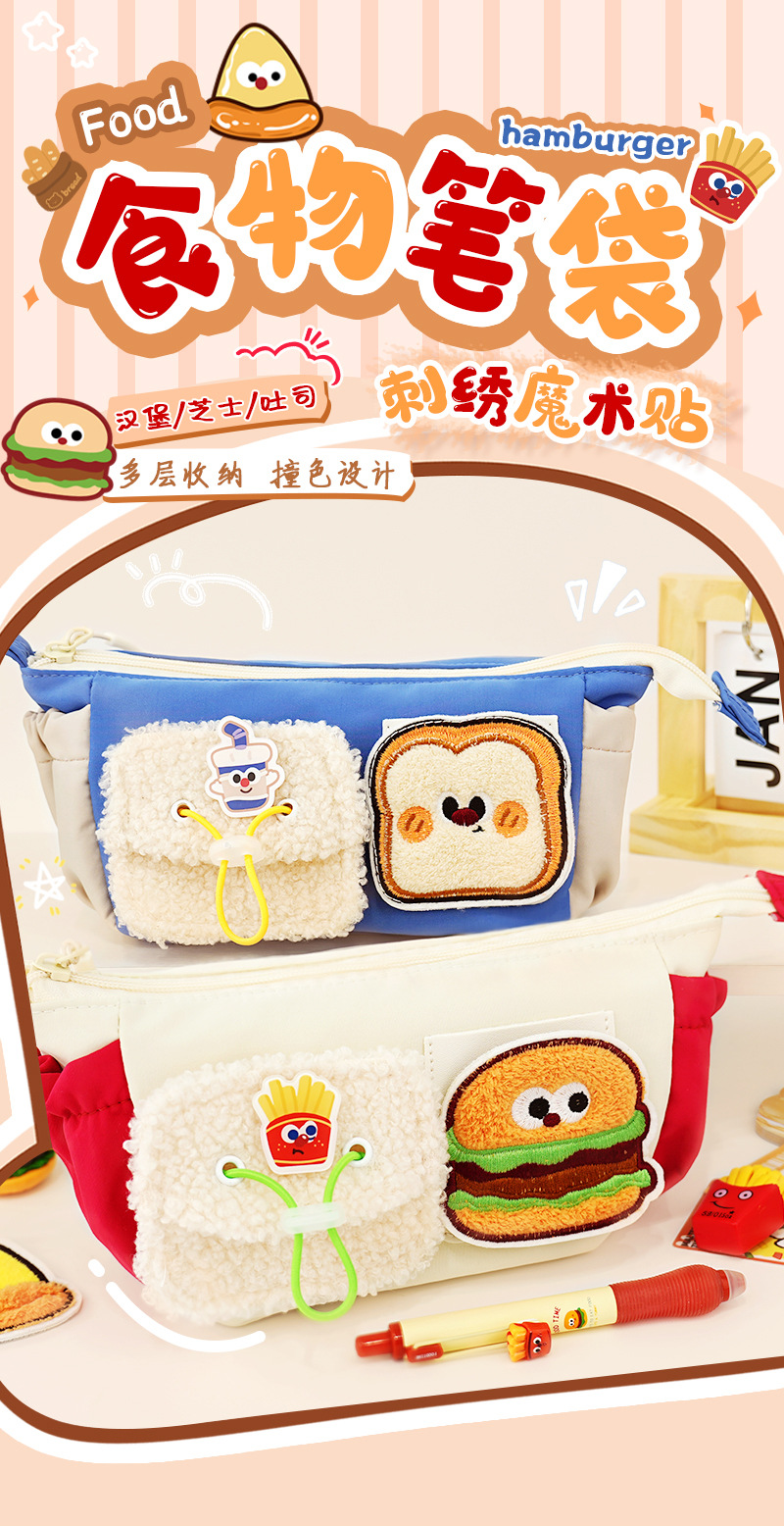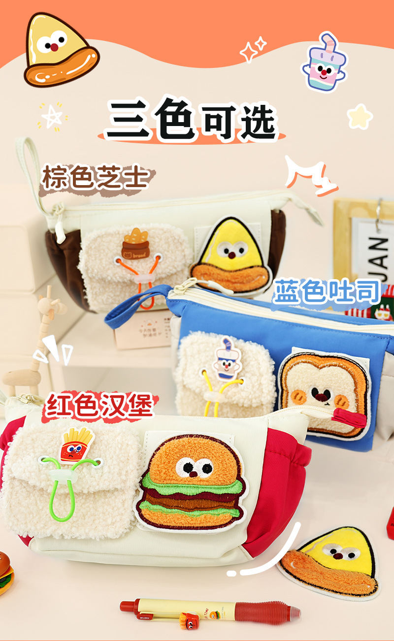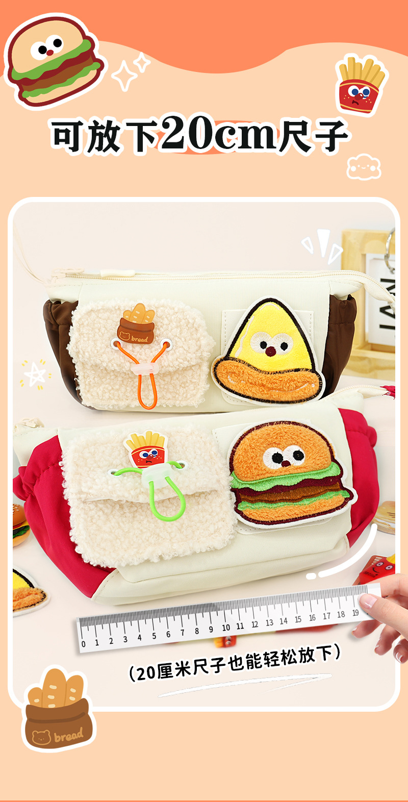 2025 nuevo oso bolso de lápices de hamburguesa lindo bolso de papelería con cremallera creativa caja de papelería para estudiantes caja de lápices niñas