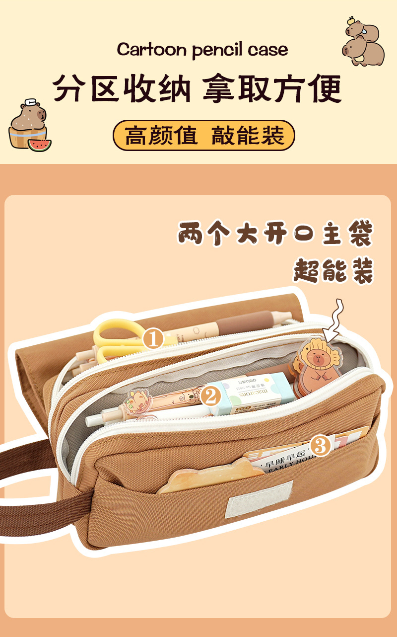 Bolsa de lápices Kabbalah simple y linda, bolsa de papelería de pequeña capibara, caja de papelería para niños, bolsa de papelería de nicho de aspecto alto, bolsa de lápices