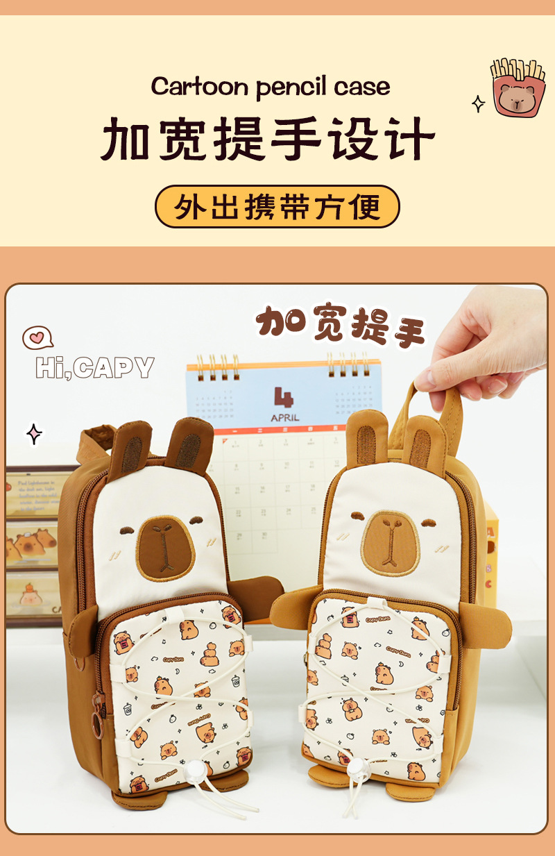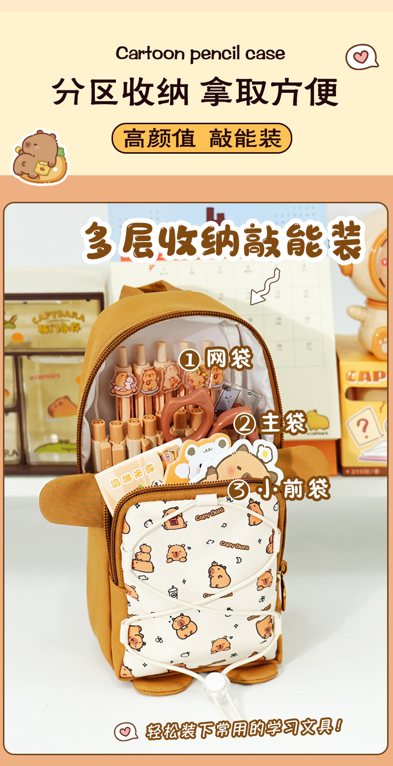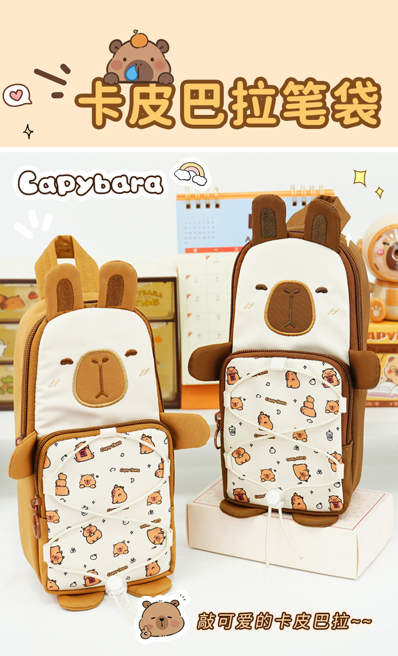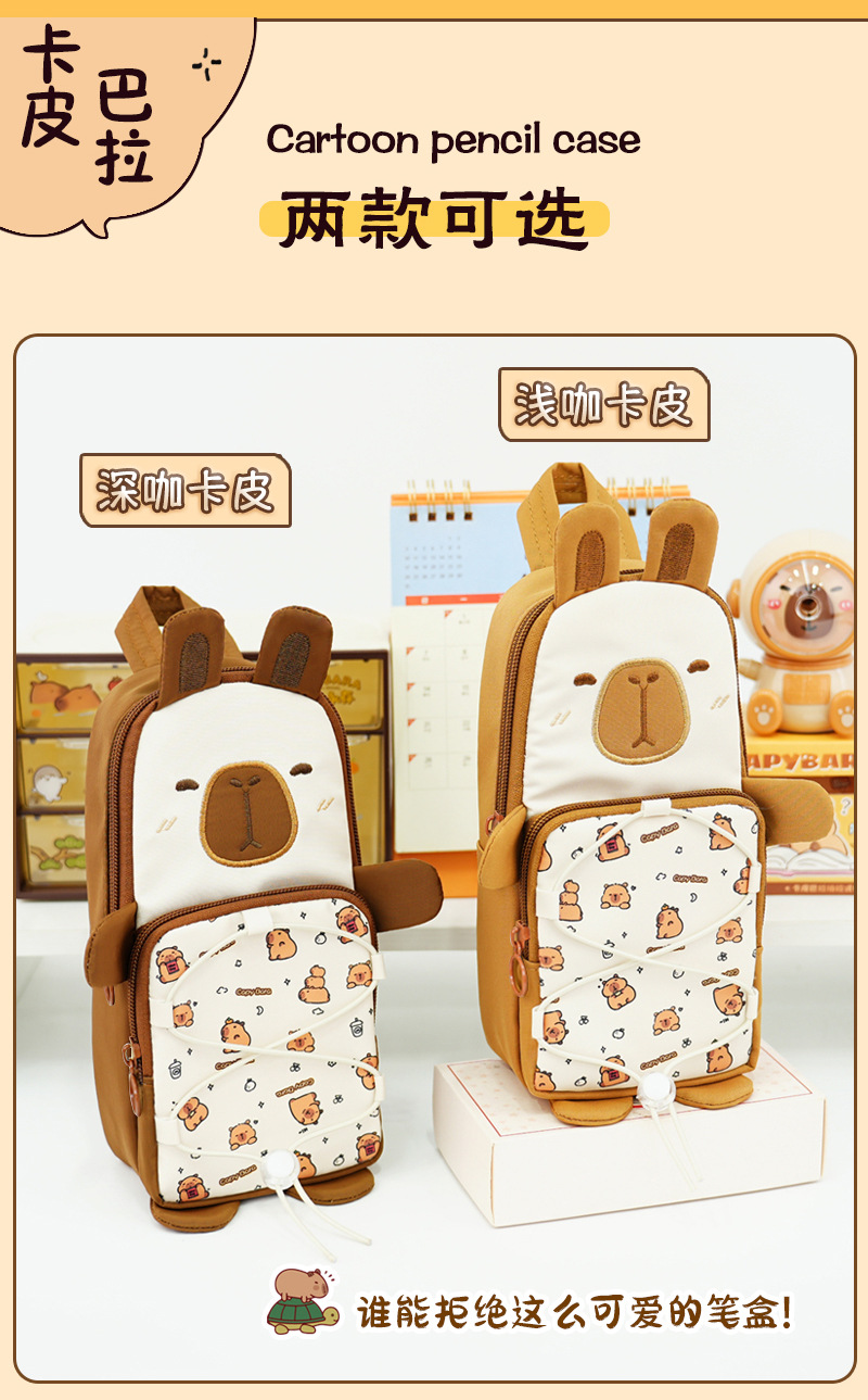 Nueva escuela primaria Kapibala pequeña mochila escolar caja de lápices caja de papelería para niños de gran capacidad bolsa de lápices multicapa ensanchada portátil