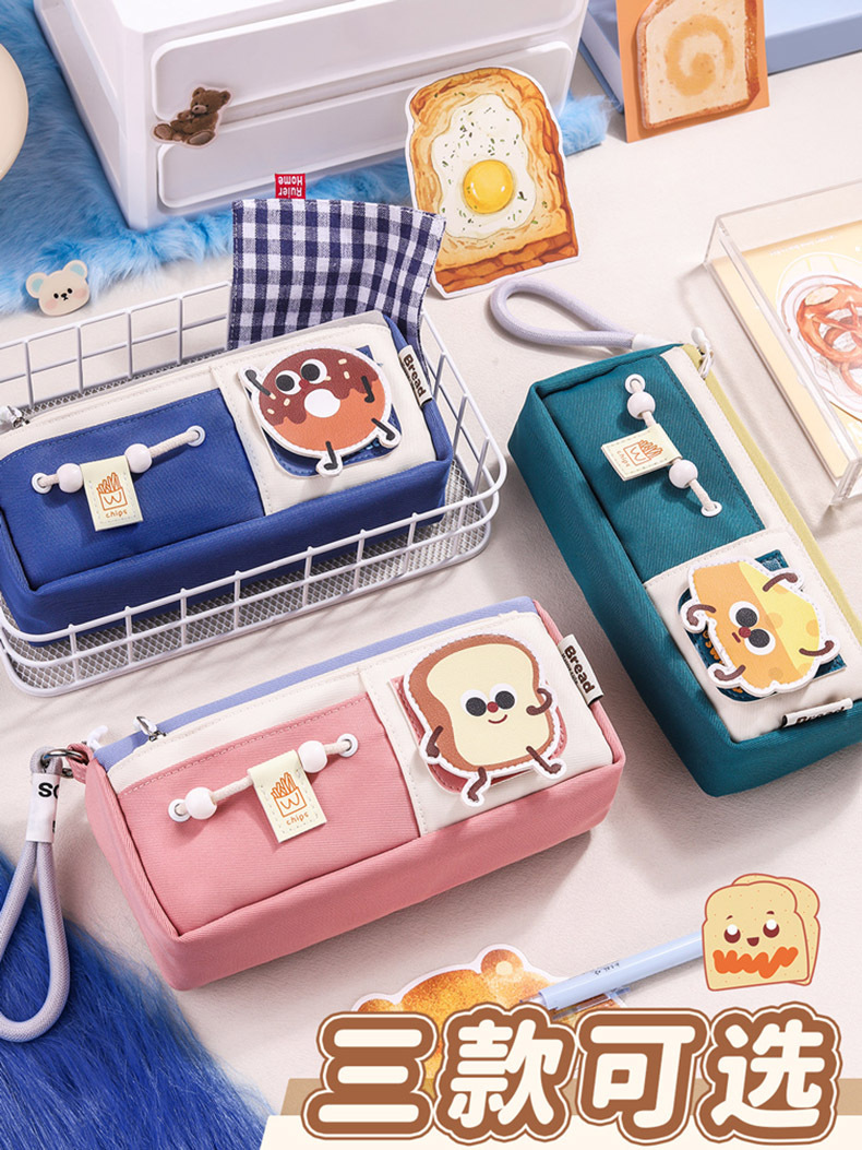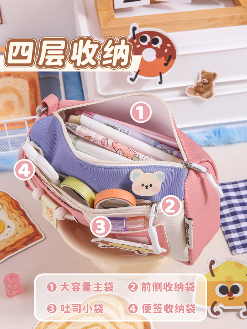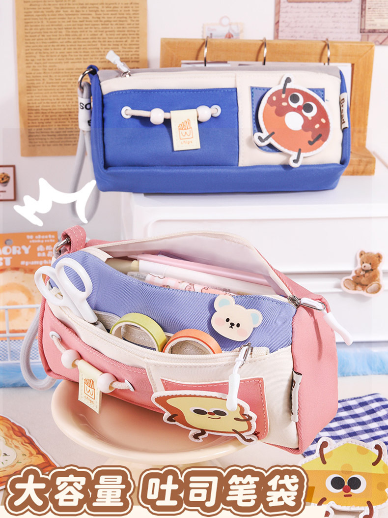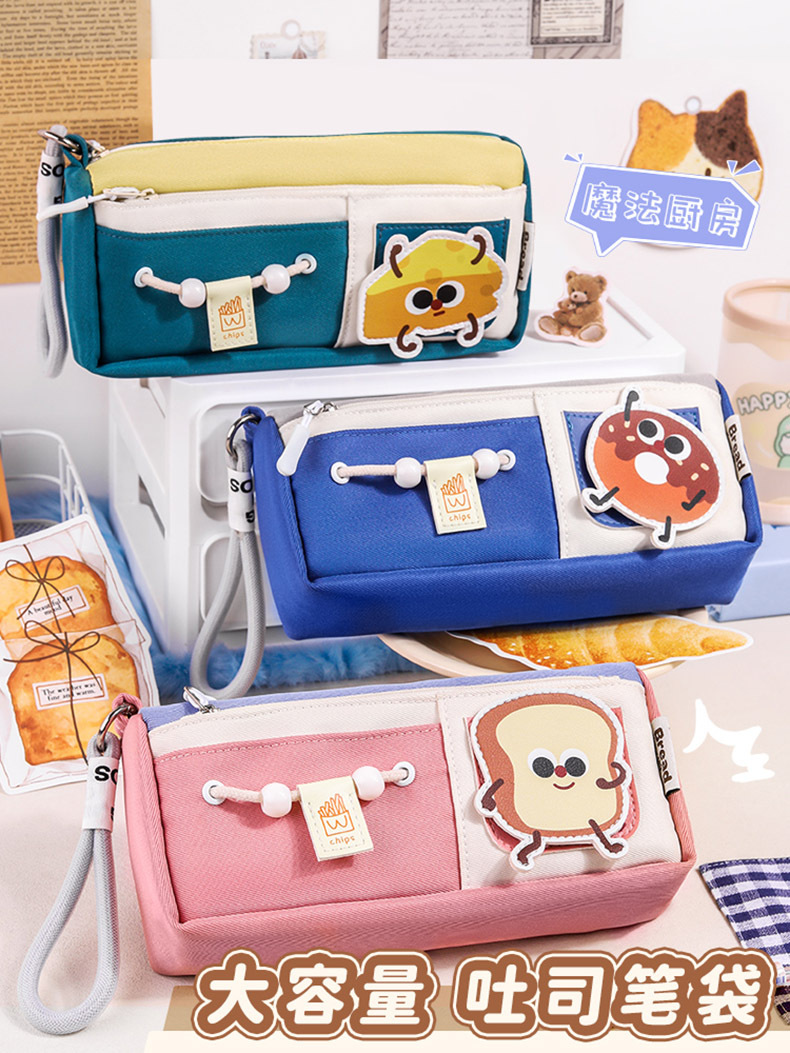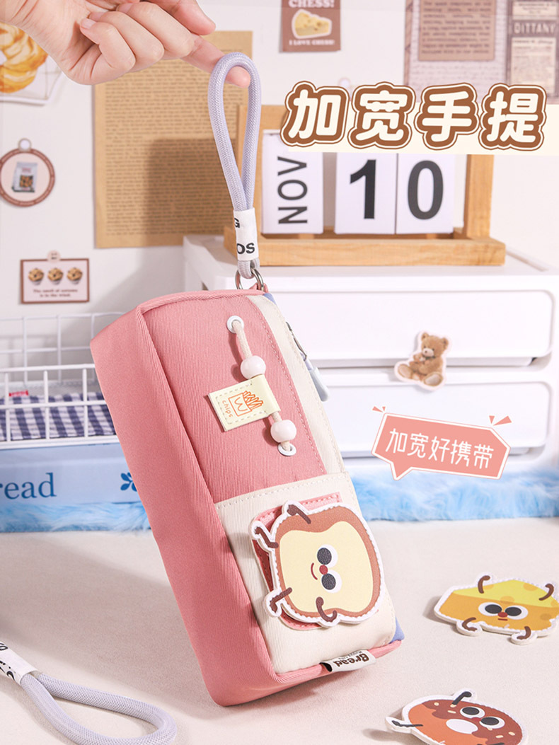 Nuevo estuche para lápices de gran capacidad para estudiantes, bolsa de papelería de nicho, caja de papelería con sentido de diseño portátil, caja de lápices multicapa de color en contraste de dibujos animados