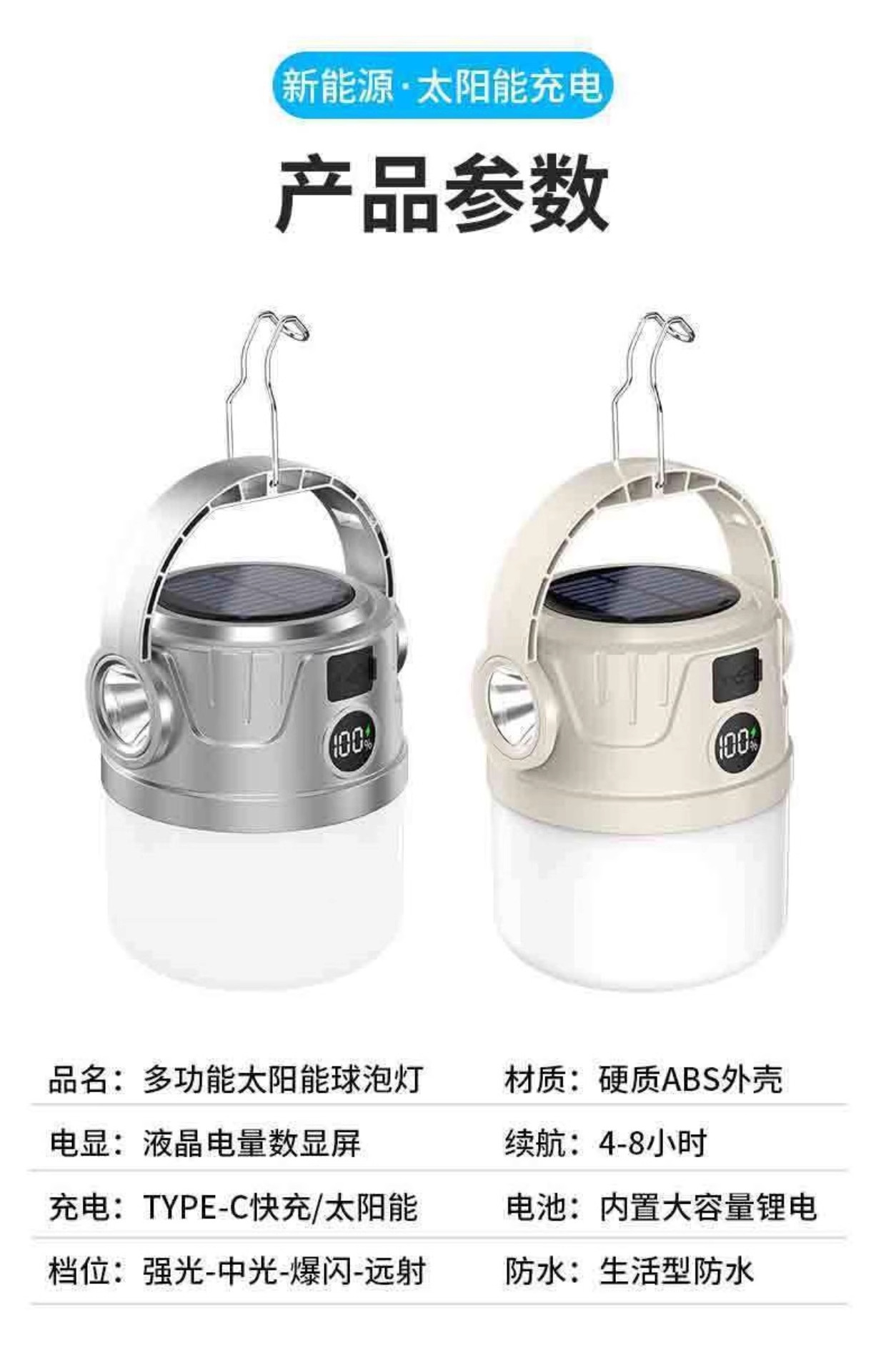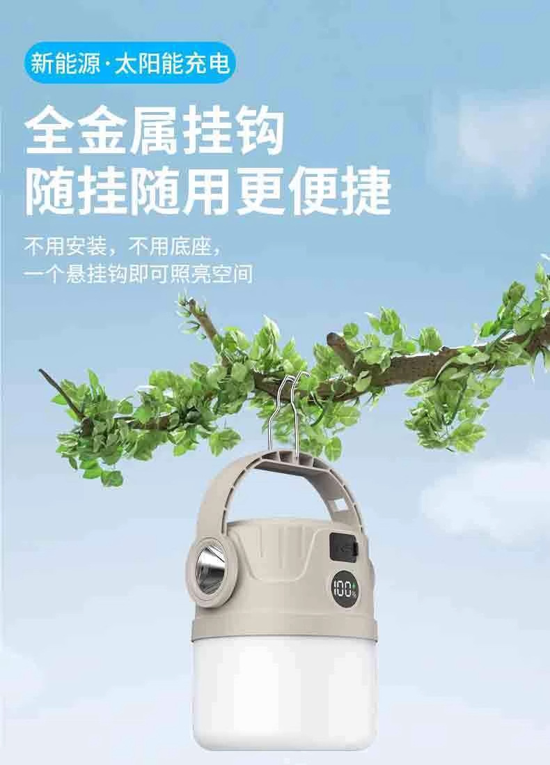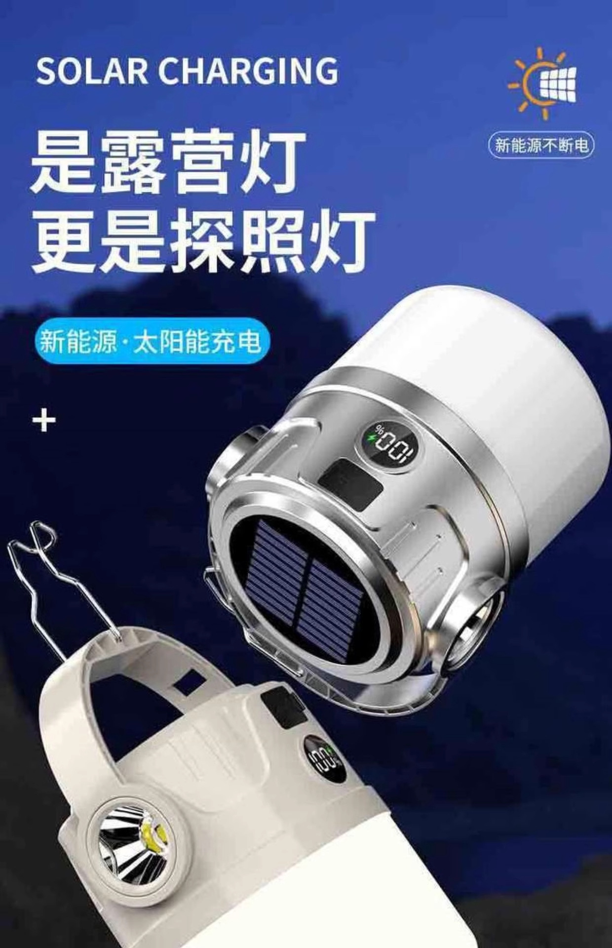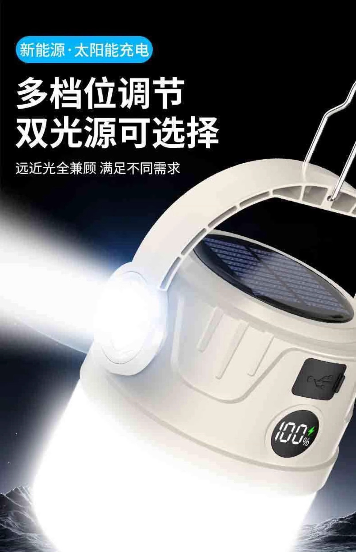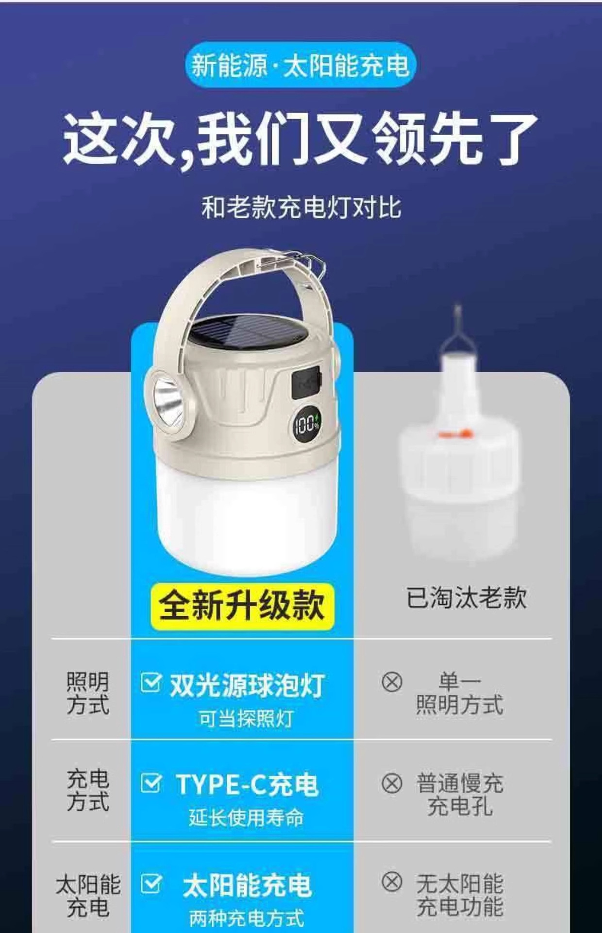 Luz de camping al aire libre Super brillante LED Luz de caballo Luz de camping luz de emergencia luz de la tienda luz recargable portátil luz solar