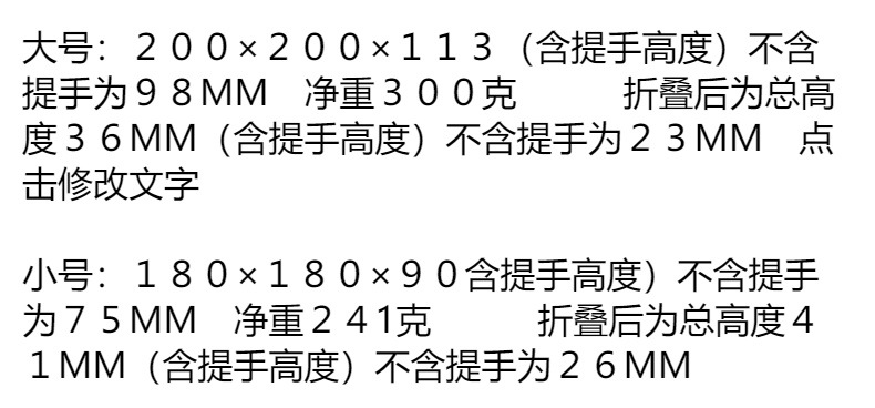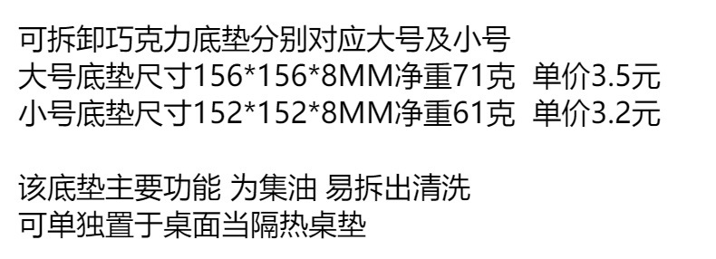 | Especificaciones | Tamaño grande 200*200*98MM,Almohadilla inferior grande 156*156*8MM,Tamaño pequeño 180*180*75MM,Almohadilla inferior de tamaño pequeño 152*152*8MM |