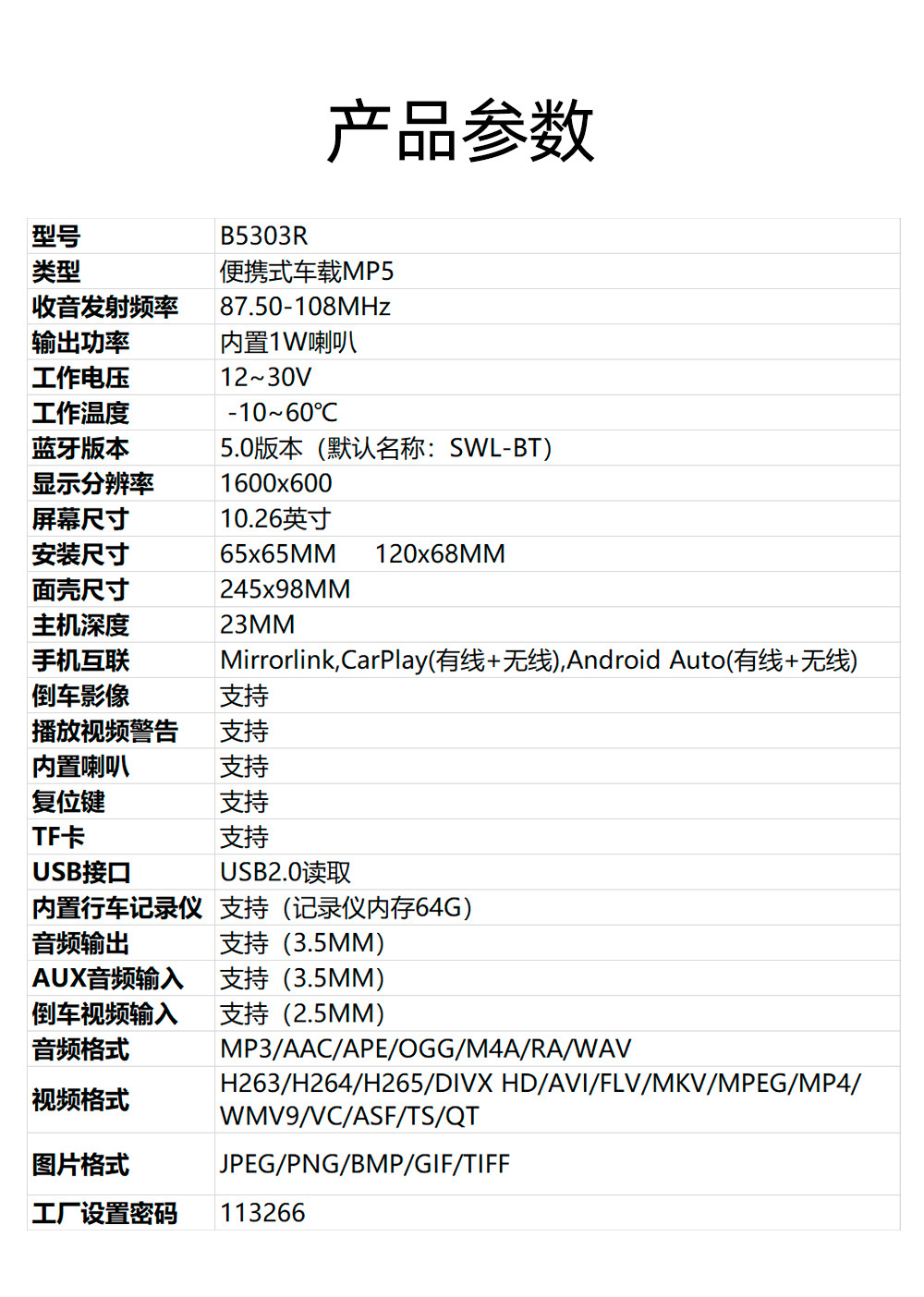 Transfronterizo nuevo 10,26 pulgadas portátil inalámbrico Carplay HD que conduce el jugador del coche MP5 del registrador