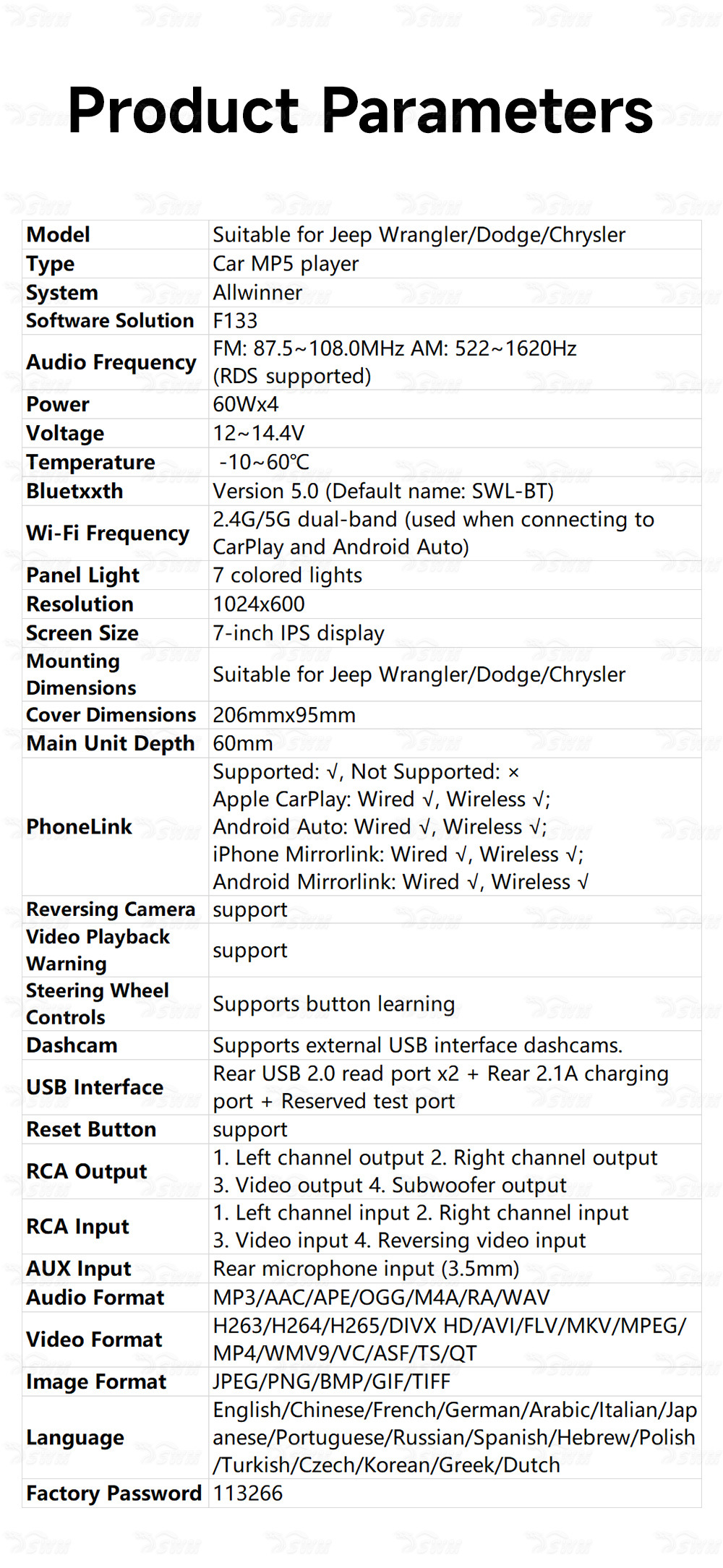 | Especificaciones | [Esquema F133] Aplicable a Jeep Wrangler |