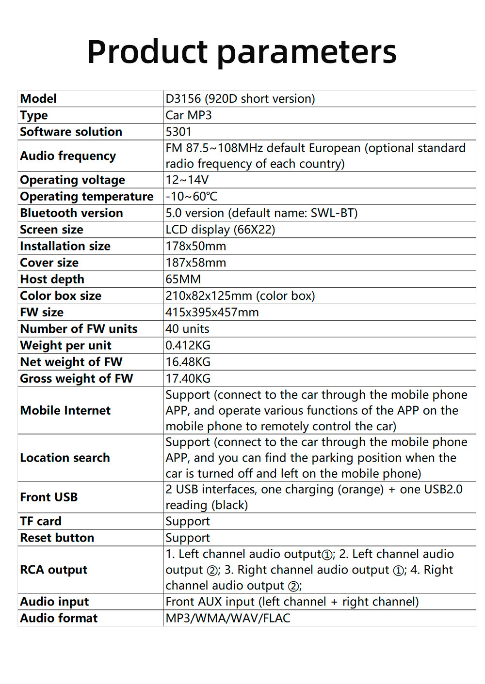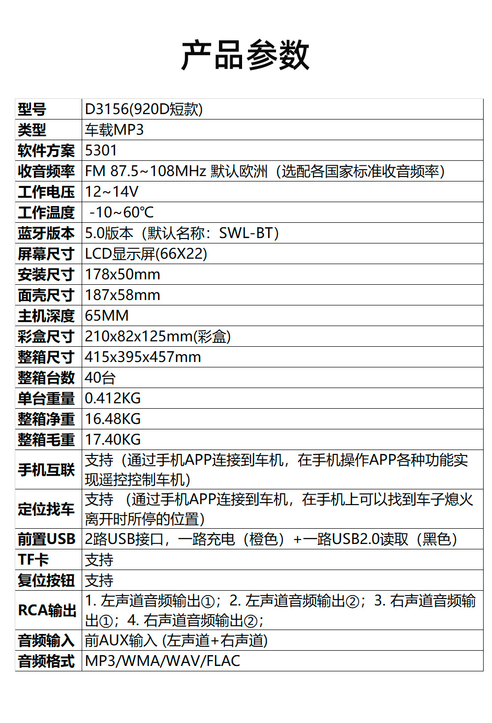 | Especificaciones | D3156 (920D) Corto |
