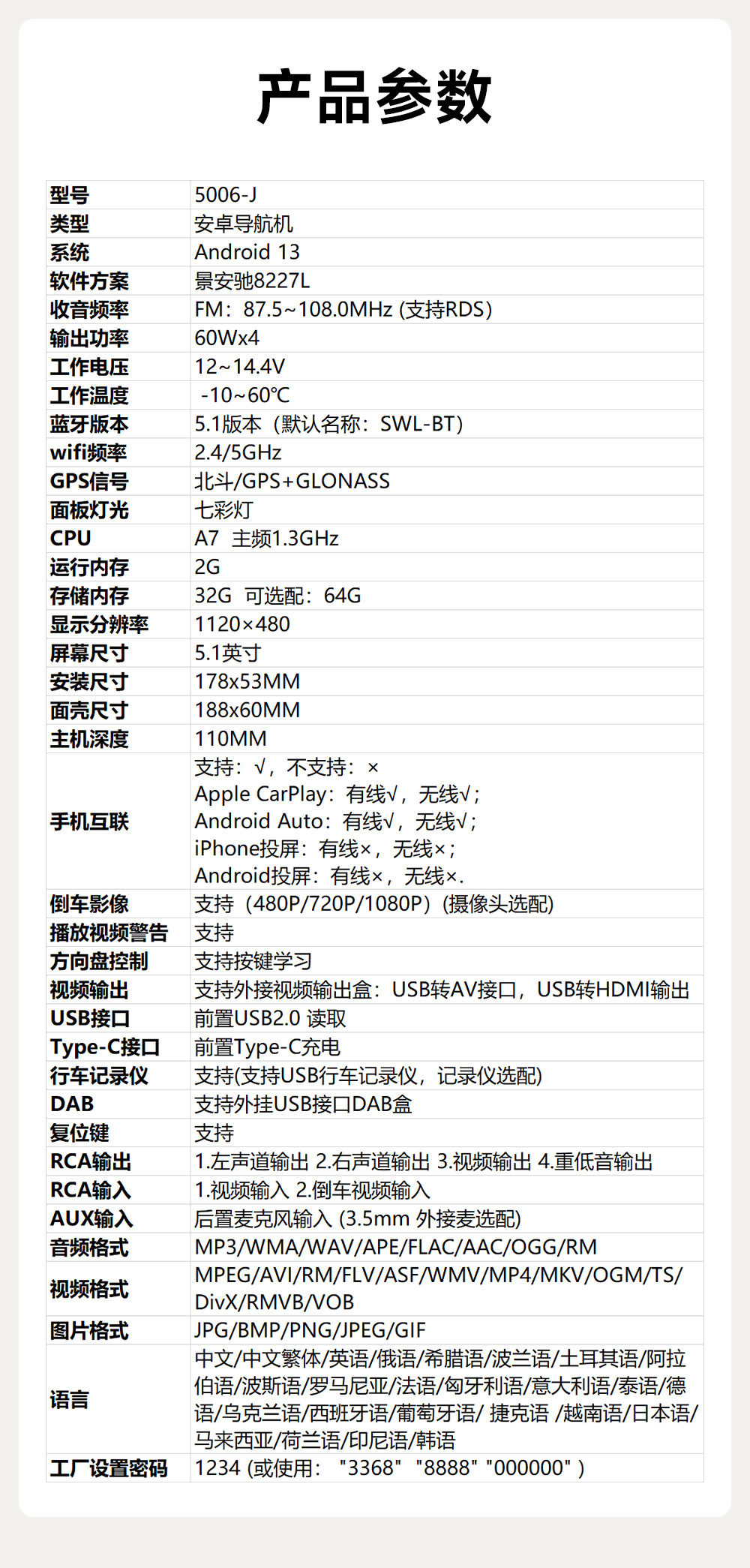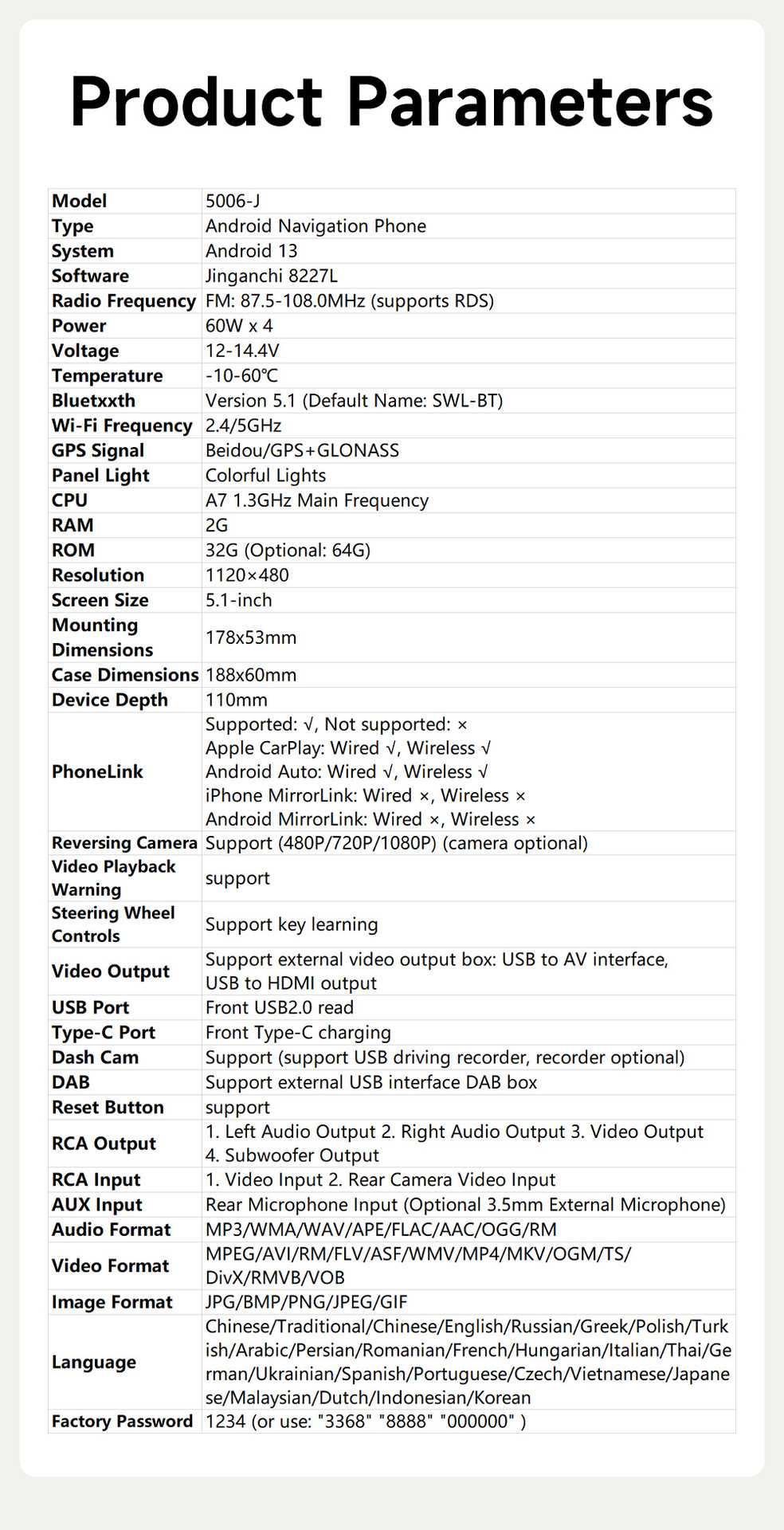 | Especificaciones | 5006 - J [Jing Anchi 2 + 64G] |