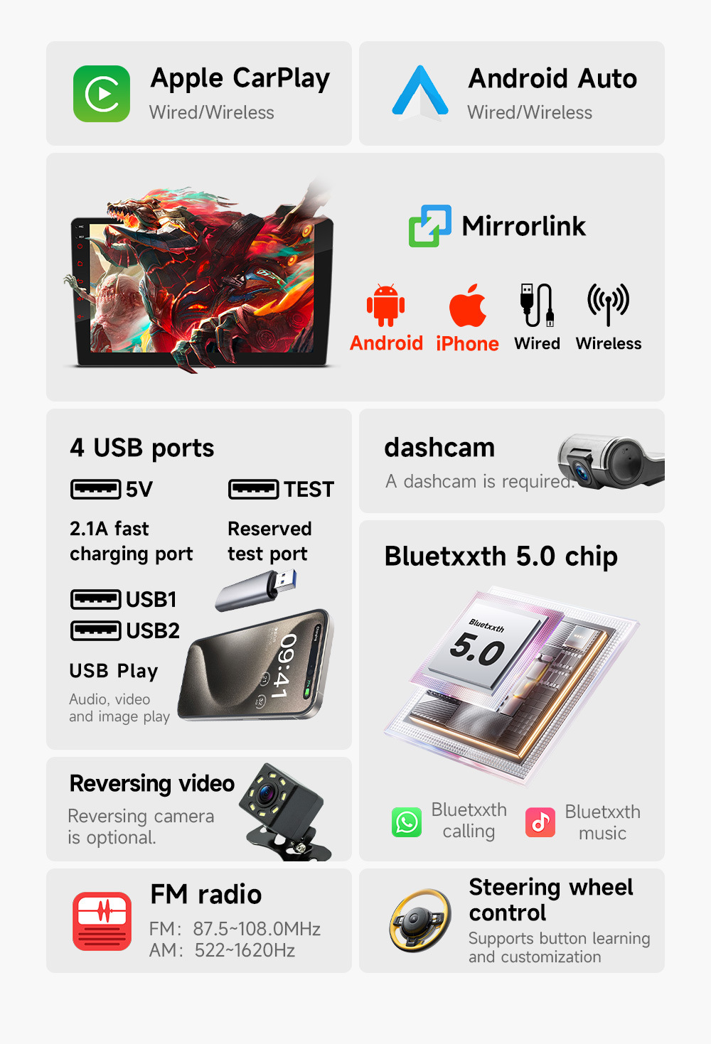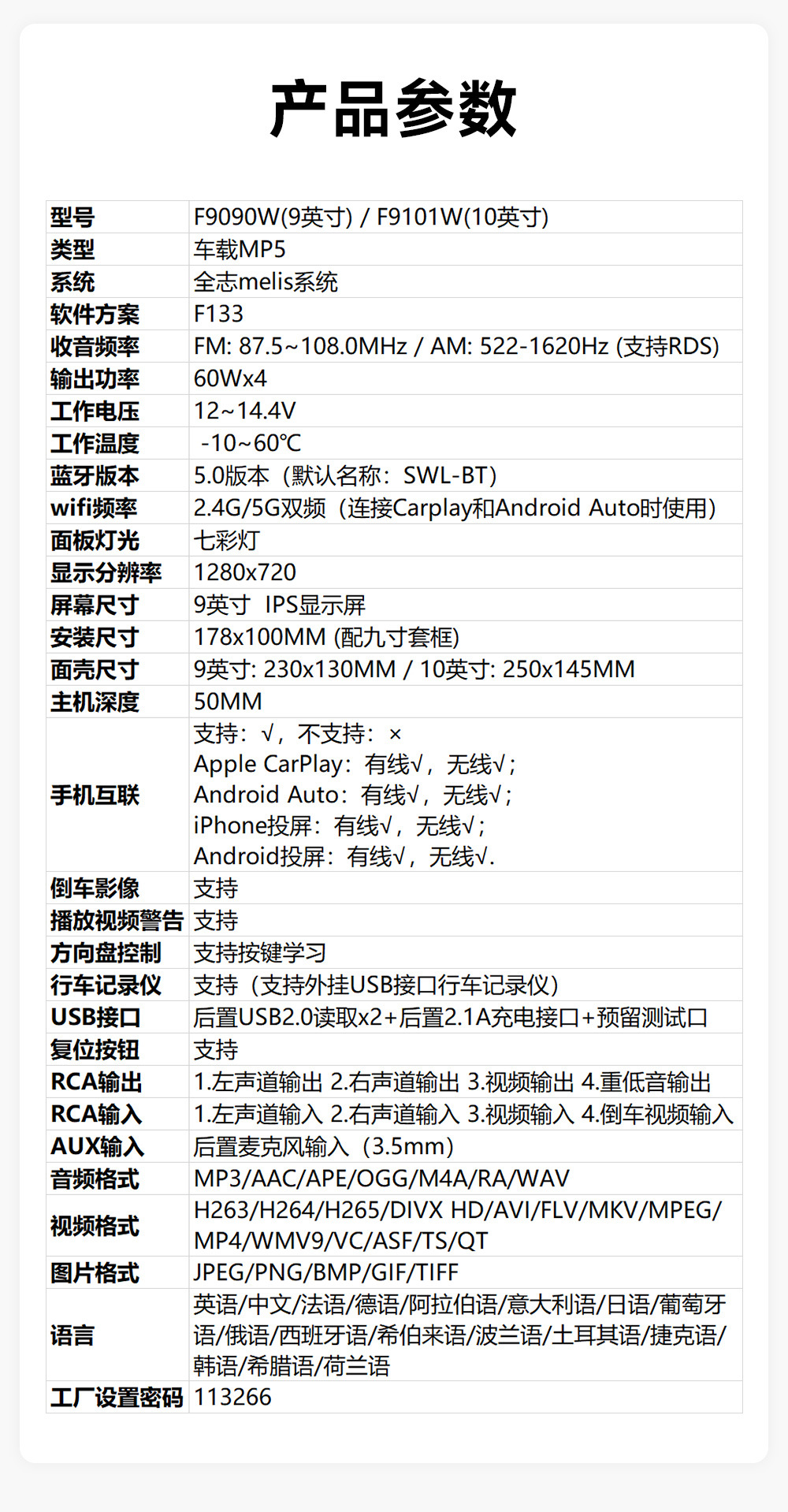 | Tamaño de la apariencia | MP5 player montado en vehículo |