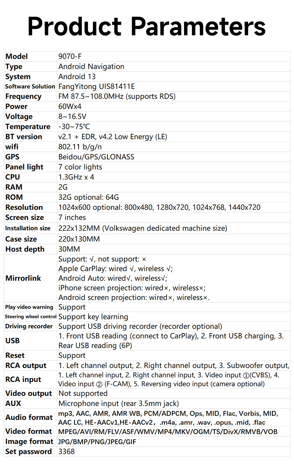 | Número de artículo | Para 7 / 8 / 9 pulgadas Volkswagen Android Navigation |