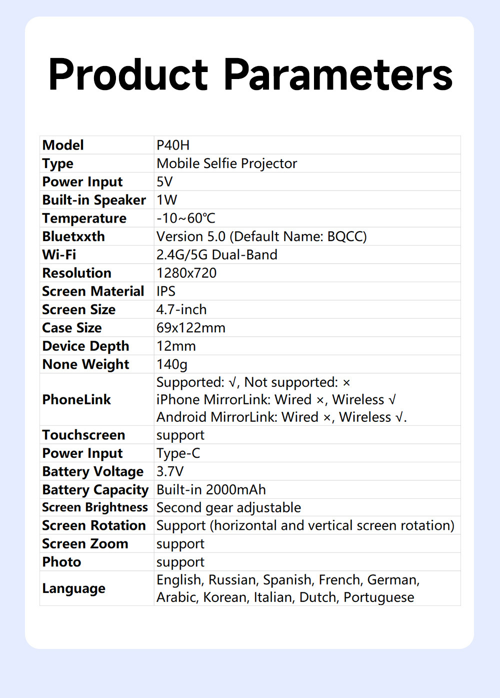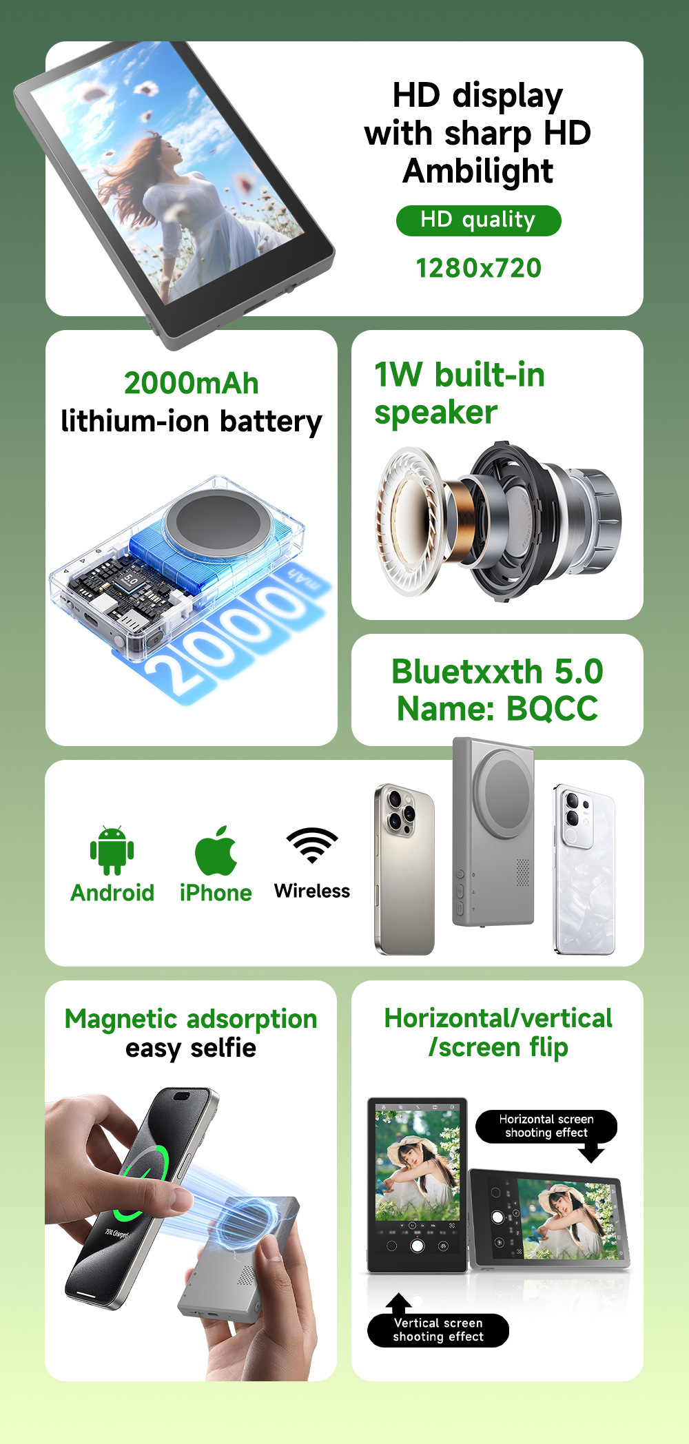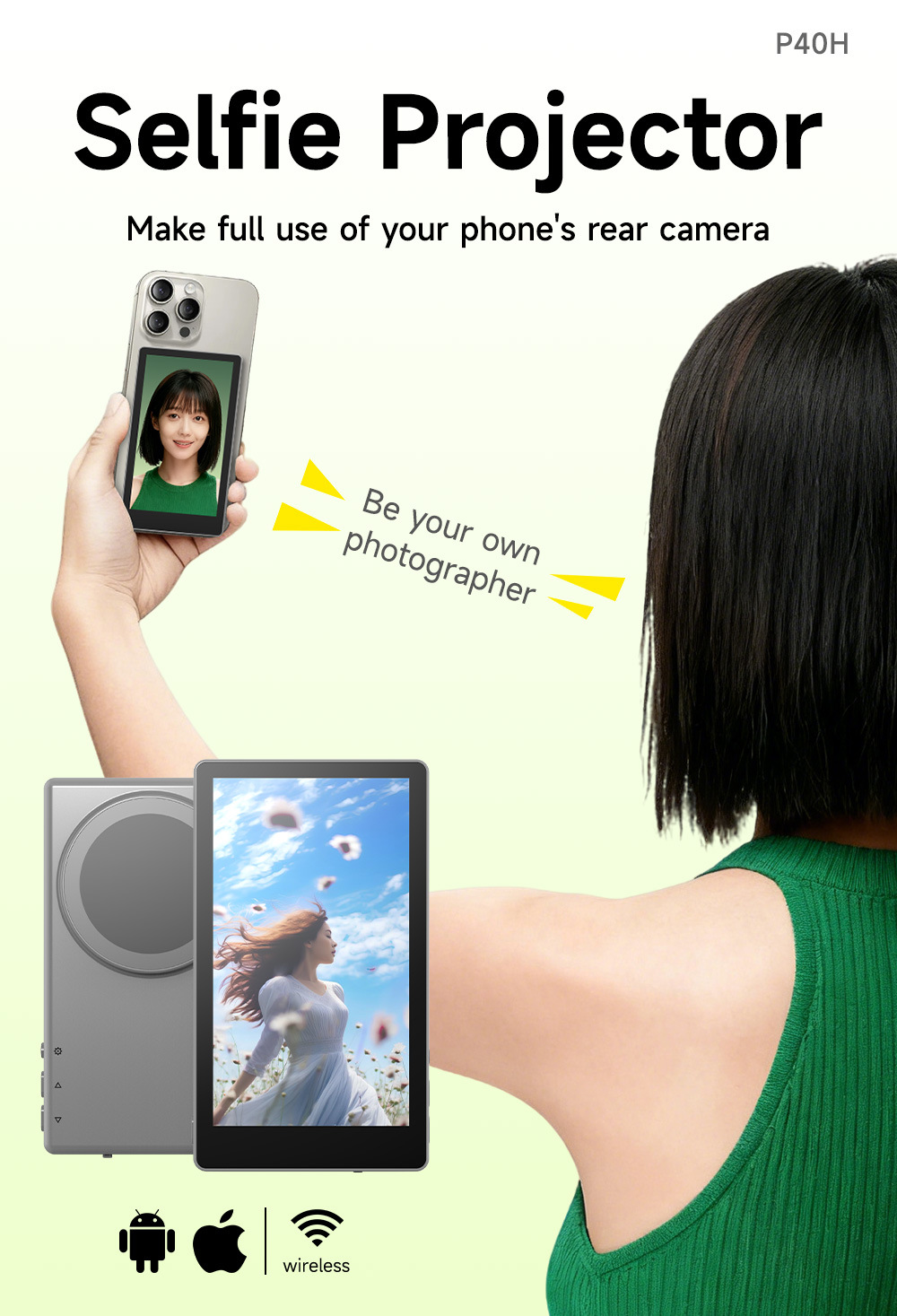 Teléfono móvil trasero proyector de pantalla inalámbrica Bluetooth pantalla de absorción magnética alta definición táctil selfie en vivo proyector de pantalla de fotografía