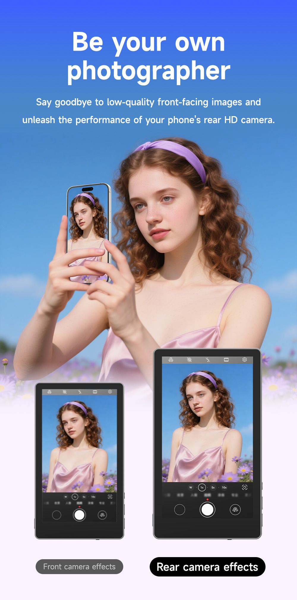 Cámara trasera HD para tomar fotos, transmisión en vivo, disparos de VLOG