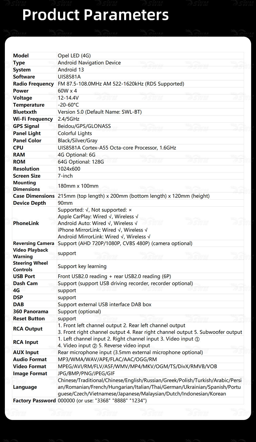 | Especificaciones | Aplicable a Opel LED (4G) [Octa-core], Aplicable a Opel LED [Quad-core] |