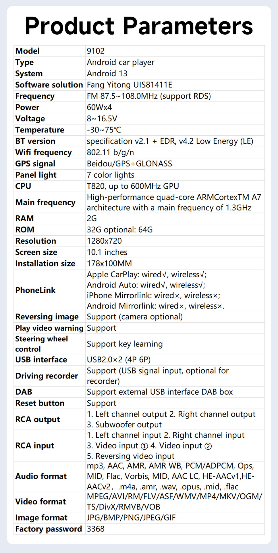 | Especificaciones | 9102【2+64G】,9103【2+64G】 |