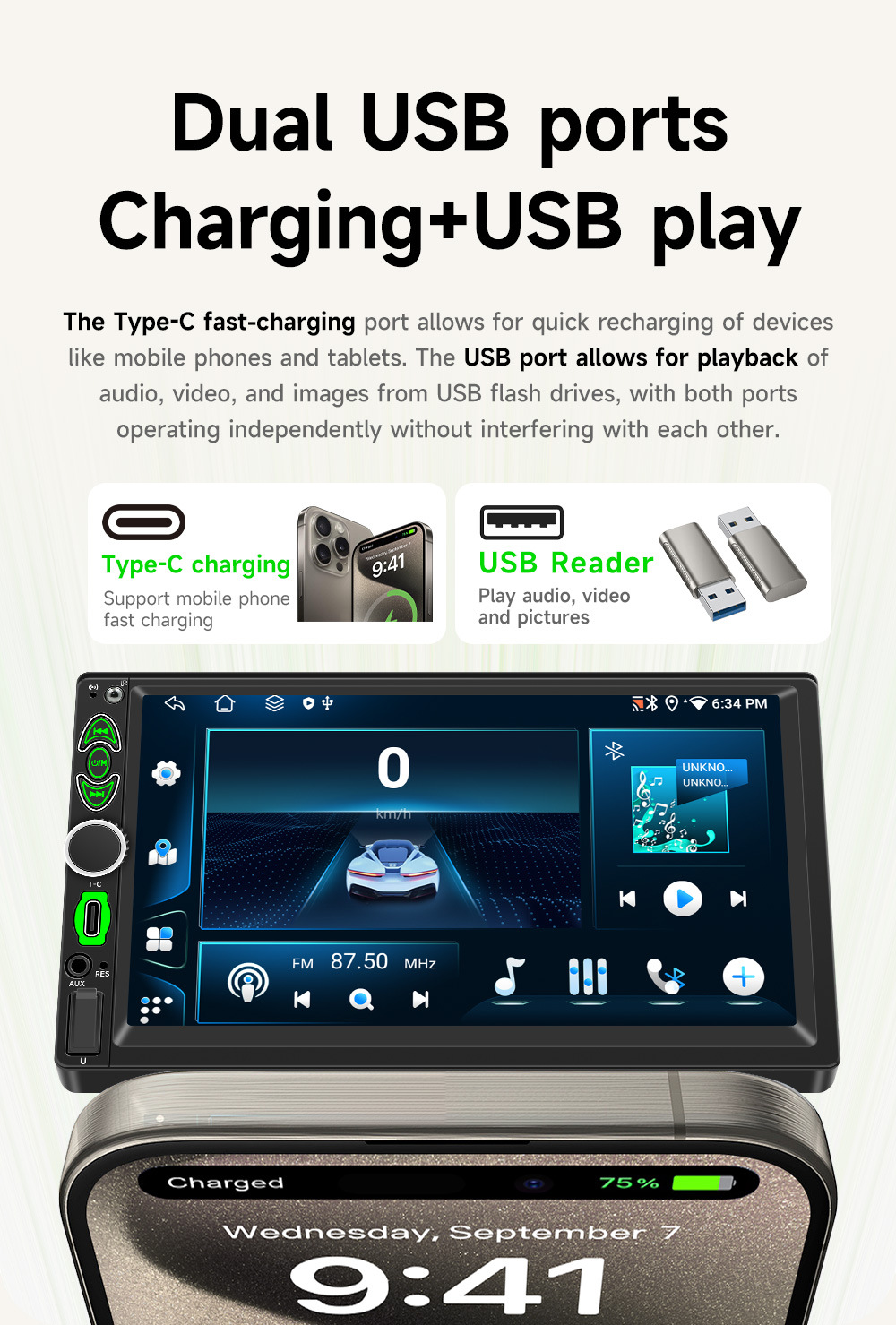 | Tamaño de la apariencia | 7 pulgadas Android navegación en coche + Carplay + GPS + WiFi |