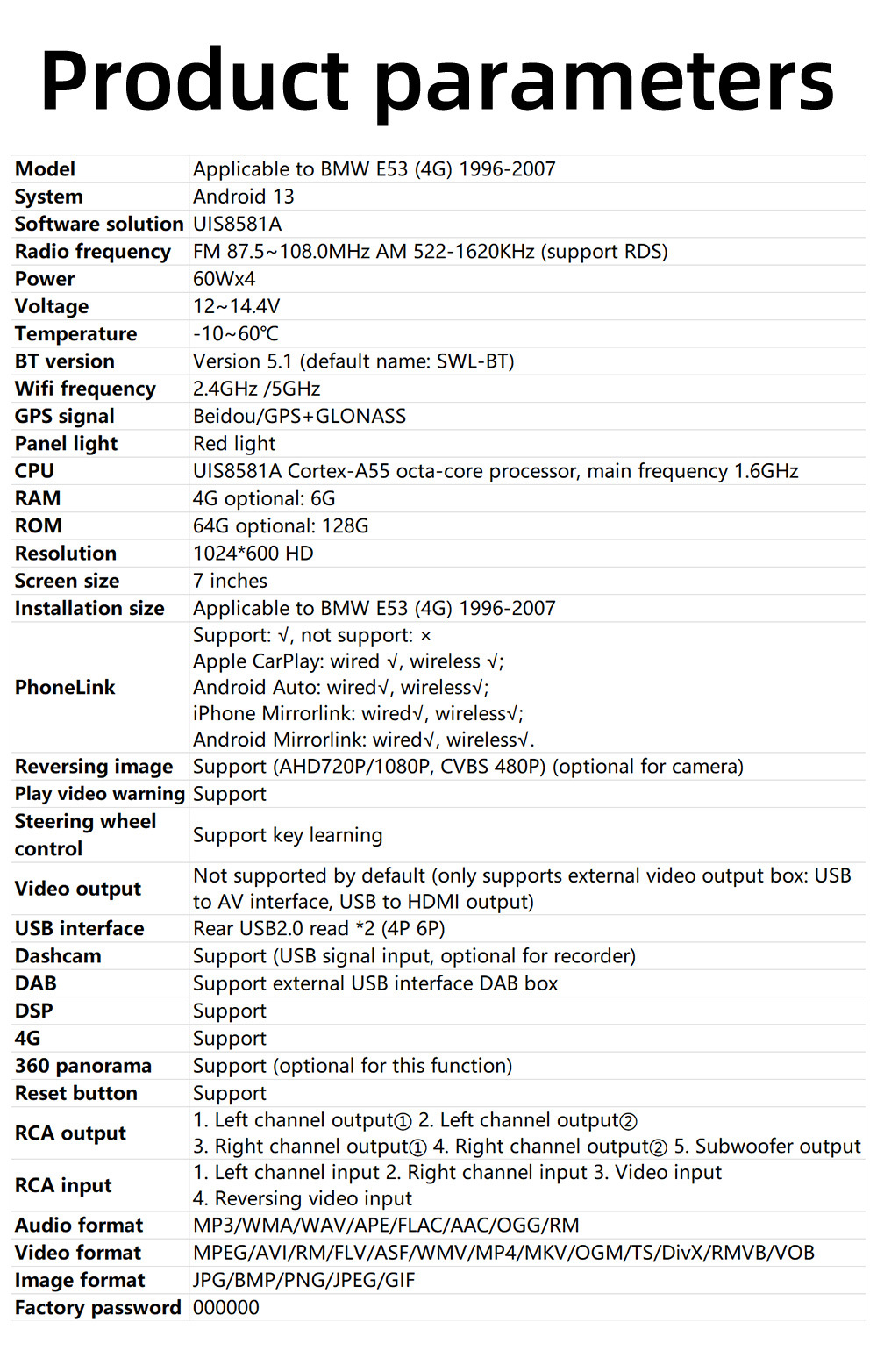 | Número de artículo | BMW E53(4G) |