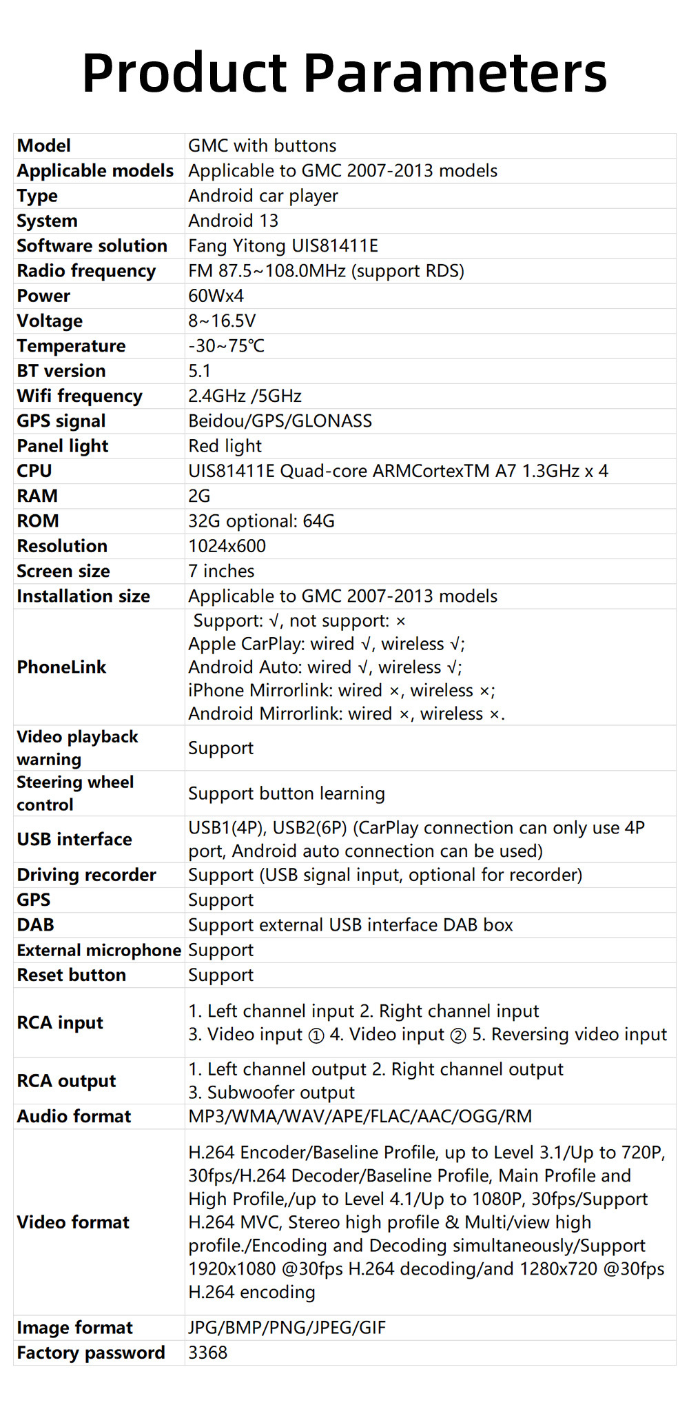 | Especificaciones | 7 pulgadas Chevrolet GMC,8 pulgadas Chevrolet GMC |