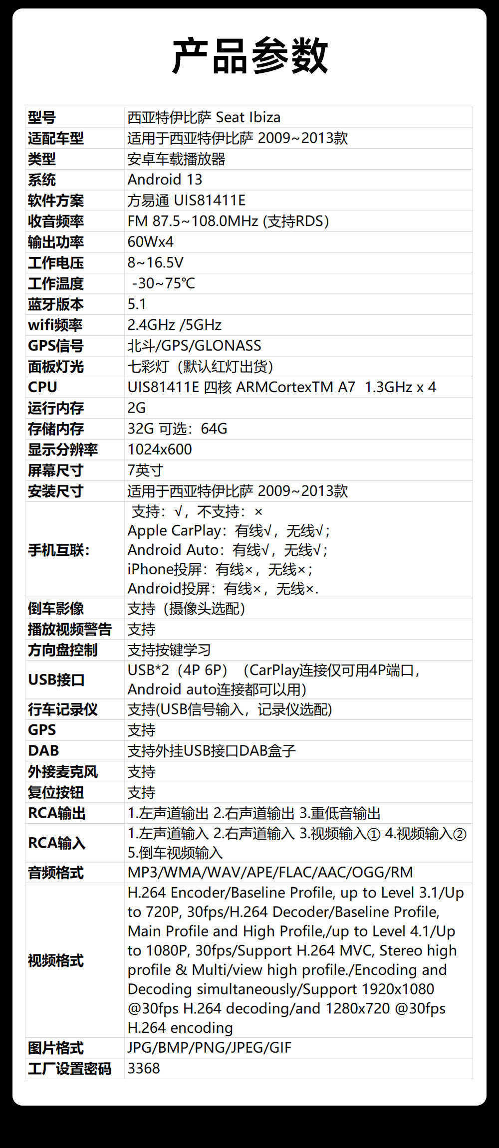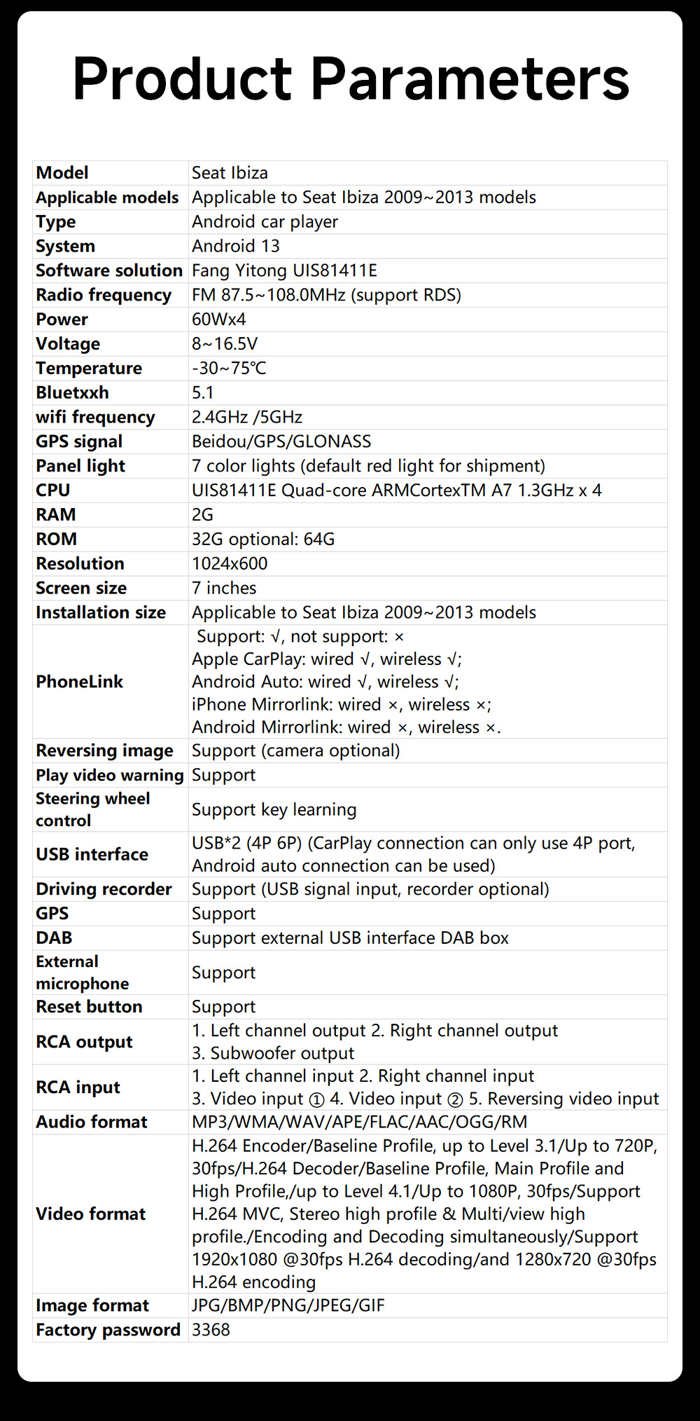 | Tamaño de la apariencia | Aplicable a los años 09 - 13 SEAT Ibiza Seat Ibiza |