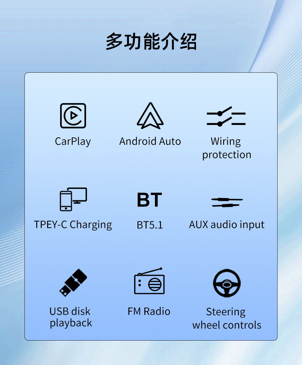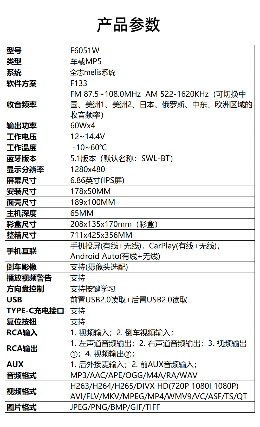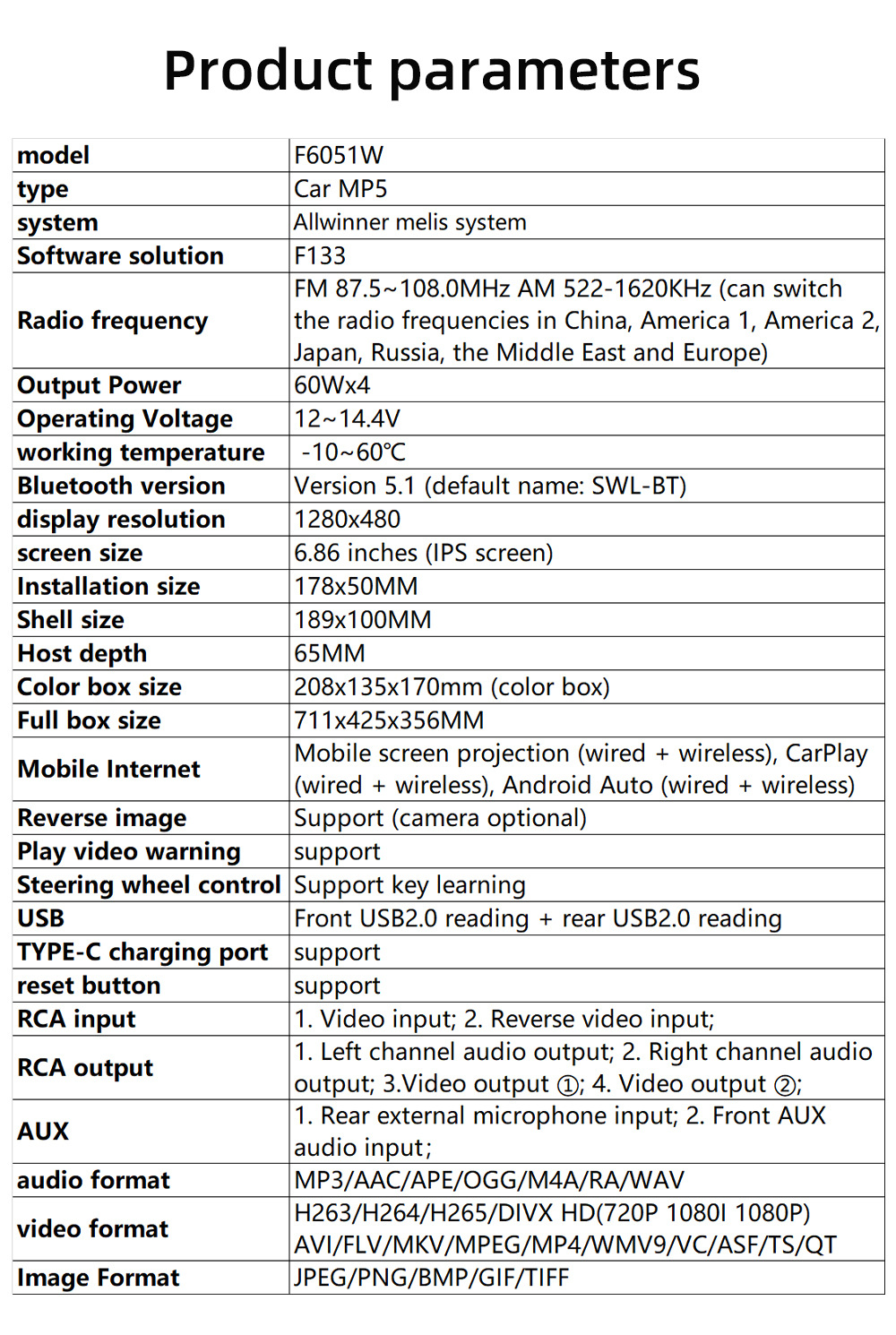 | Especificaciones | F6051C (carplay cableado), F6051W (carplay inalámbrico) |