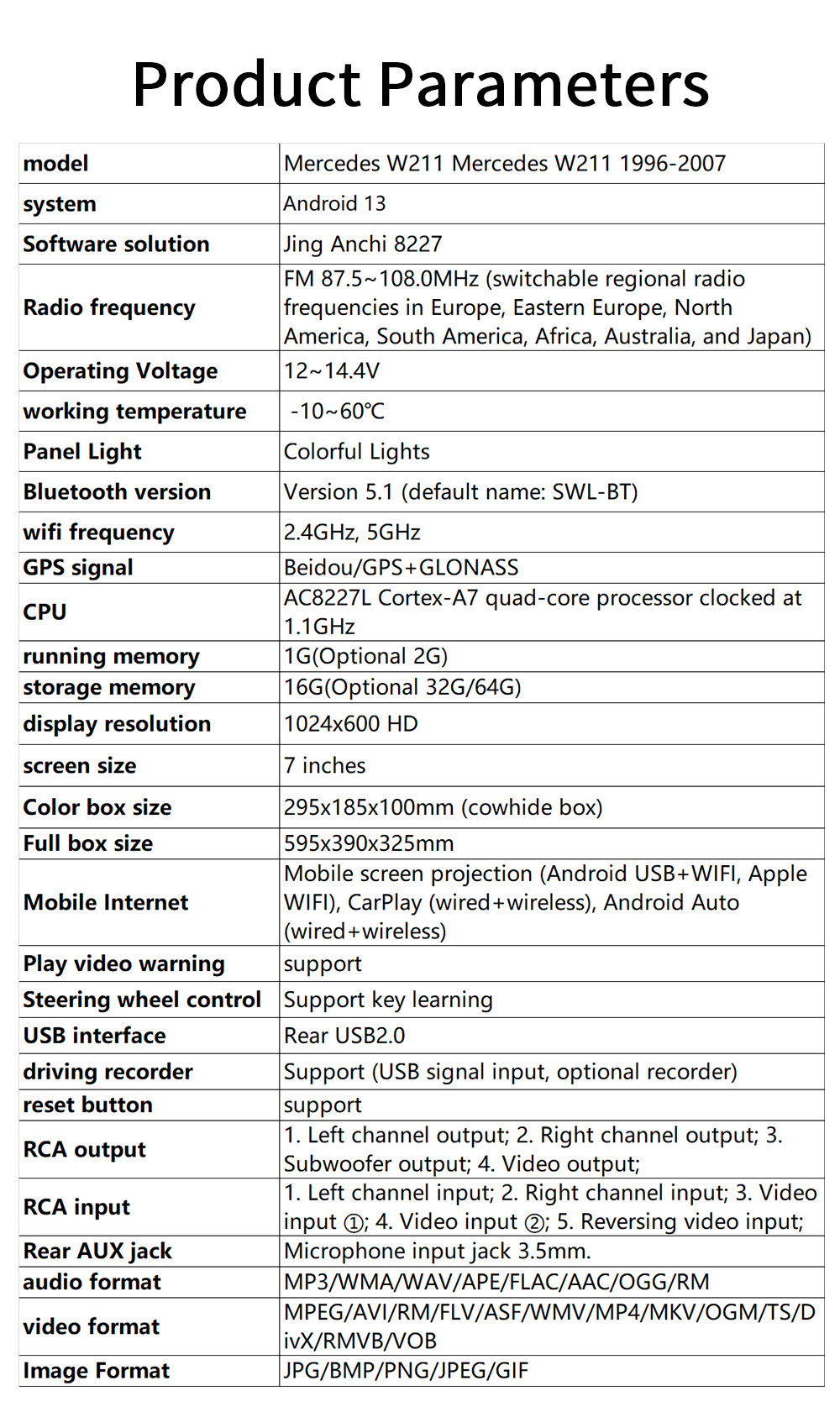| Especificaciones | 2 + 64G (por defecto AHD ASP carplay) |
