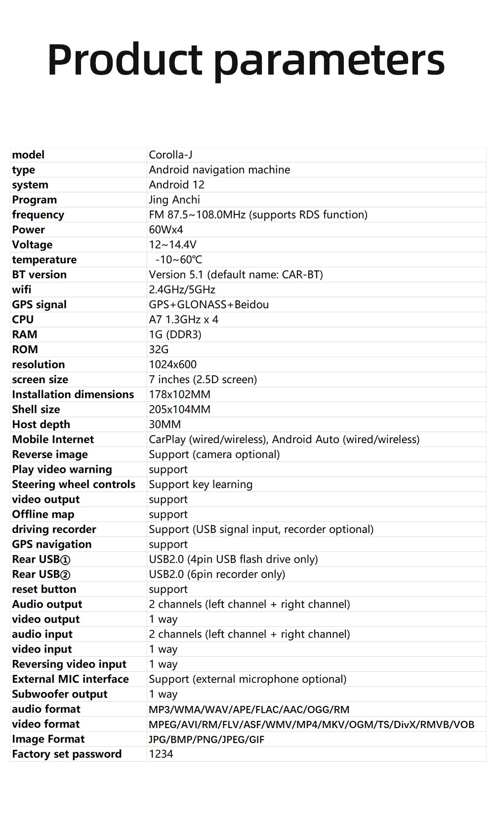 | Marcas aplicables del coche | Corolla |