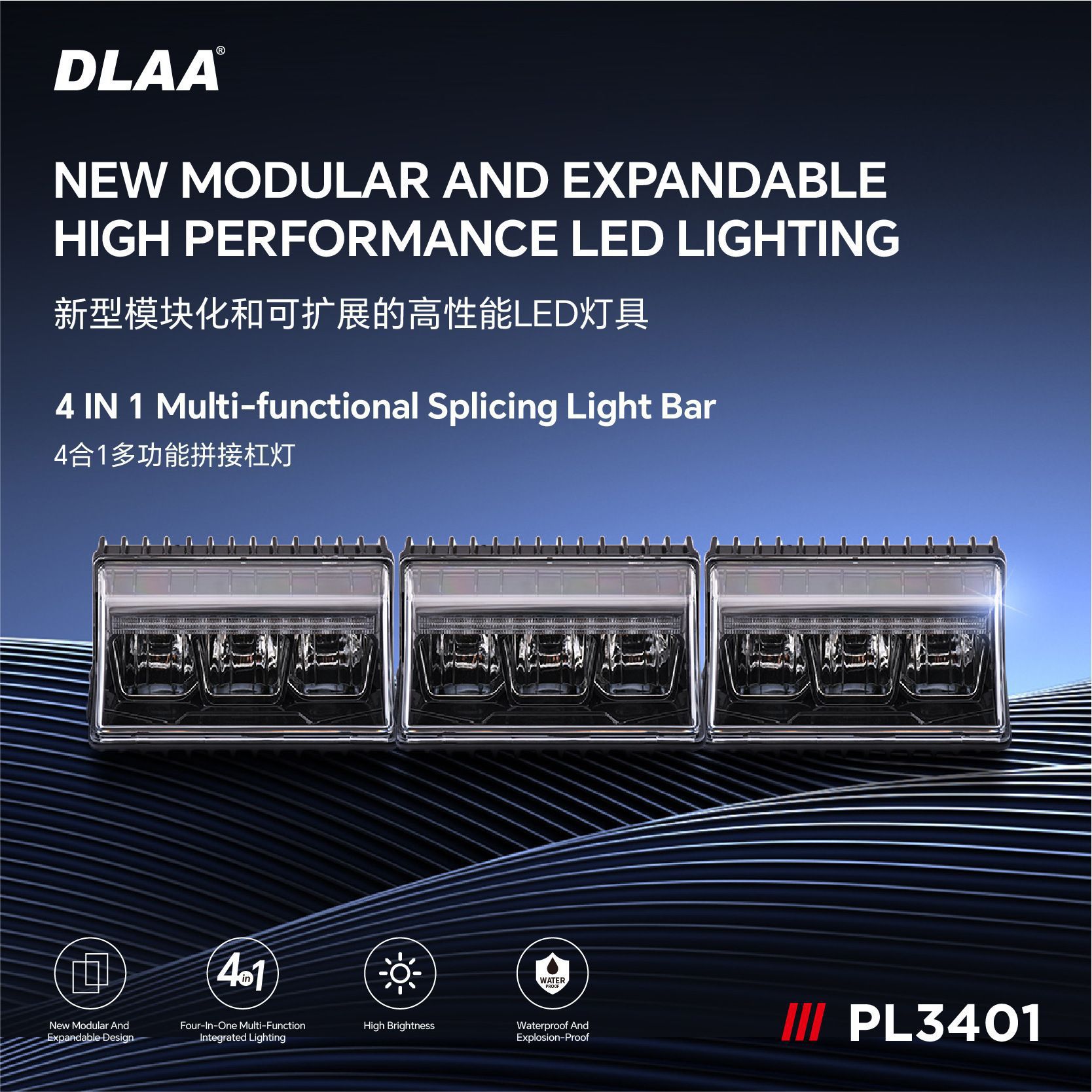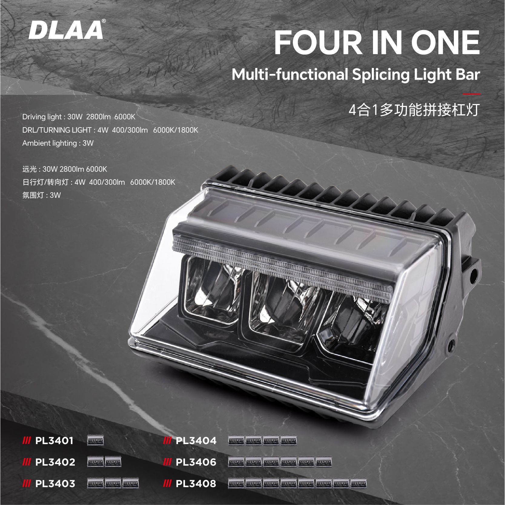 4 - en - 1 multifuncional lámpara de barra de empalme LED de alta distancia de irradiación de larga distancia de luz superior de doble posición de luz