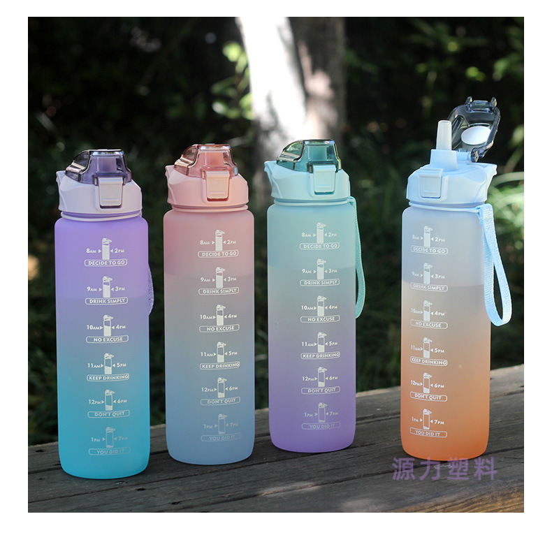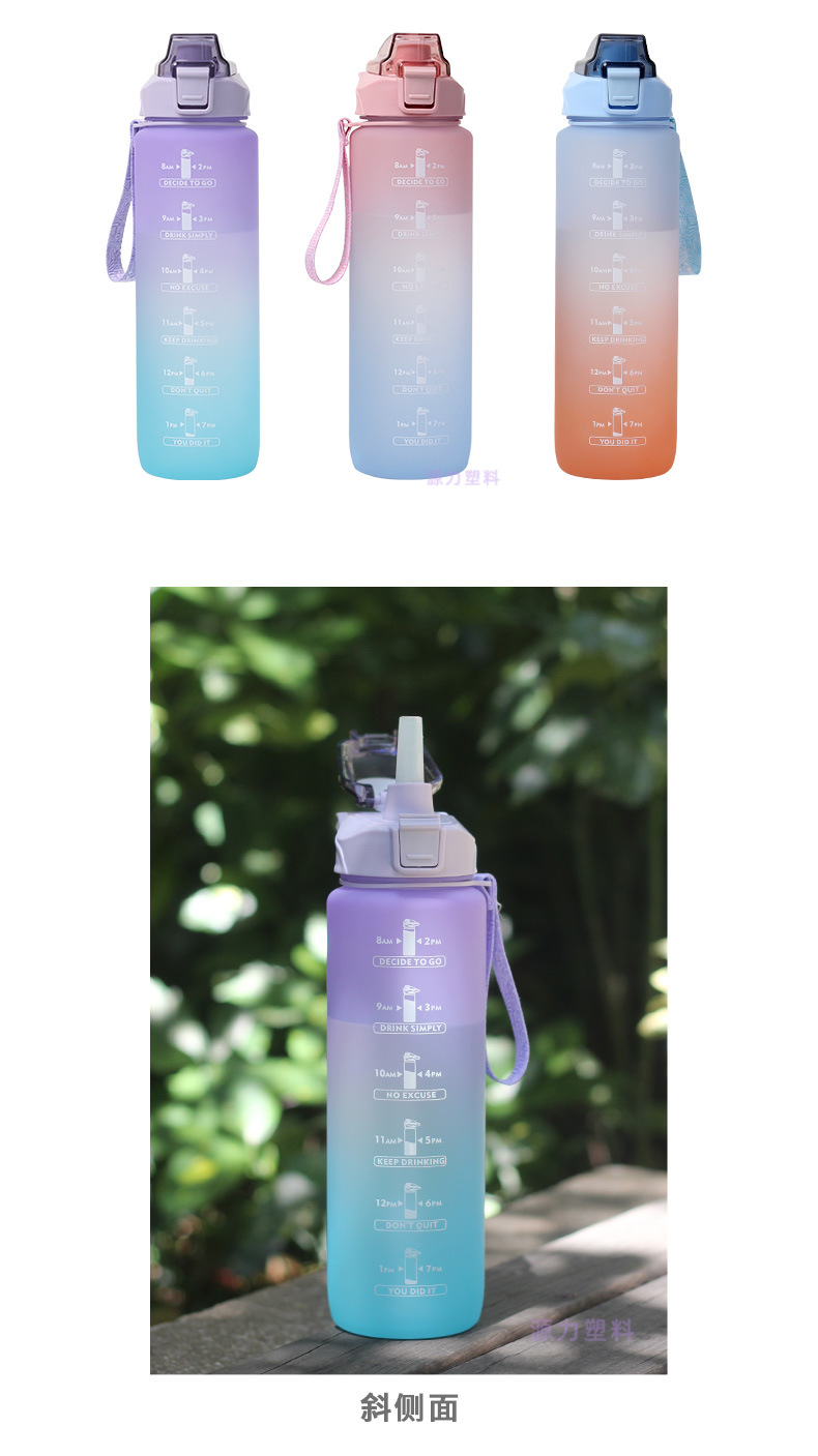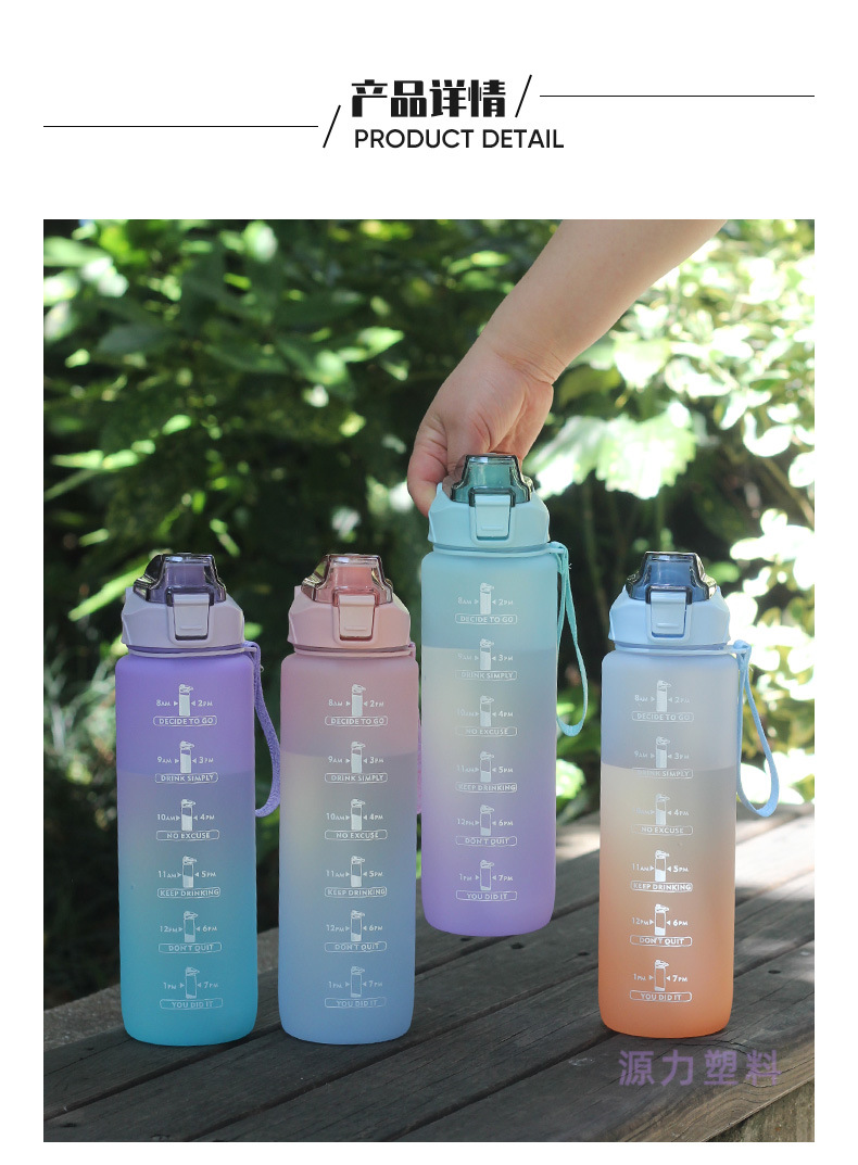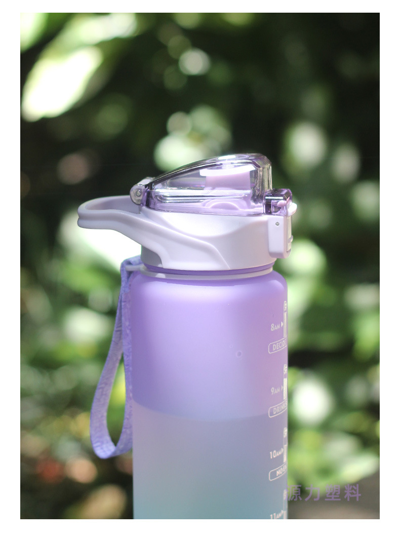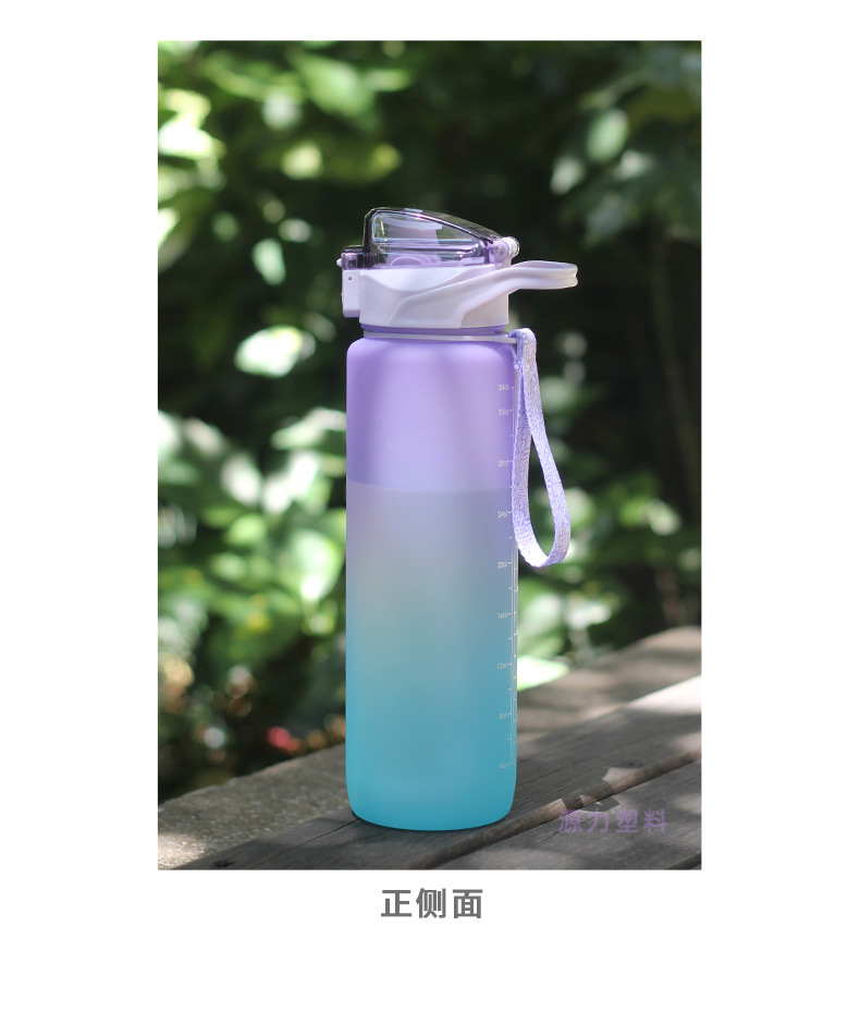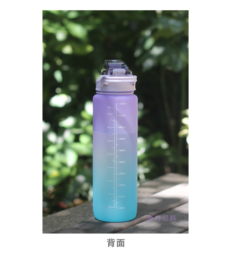 Gradiente de color botella de agua esmerilado espacio taza portátil cuerda boquilla de succión taza de agua 1000ml gimnasio deportes hervidor transfronterizo