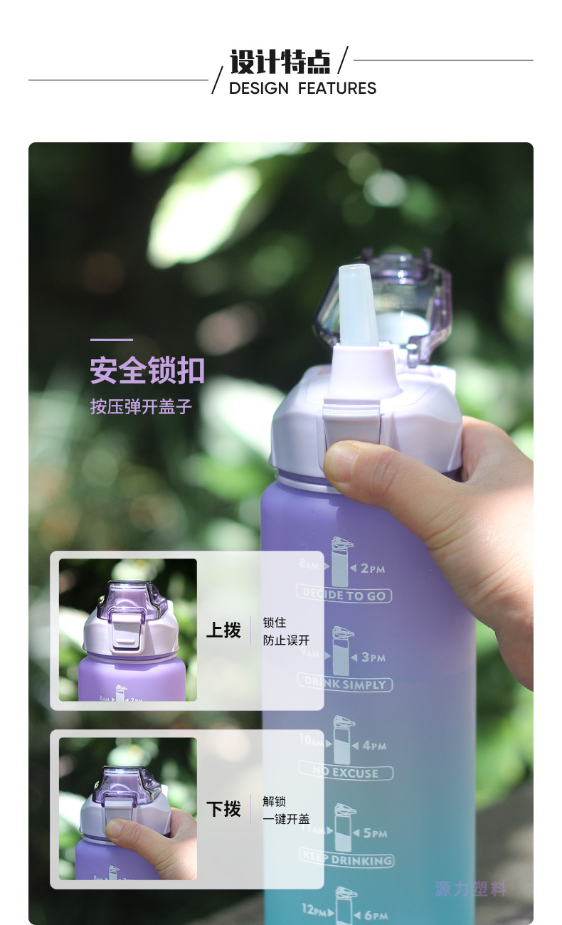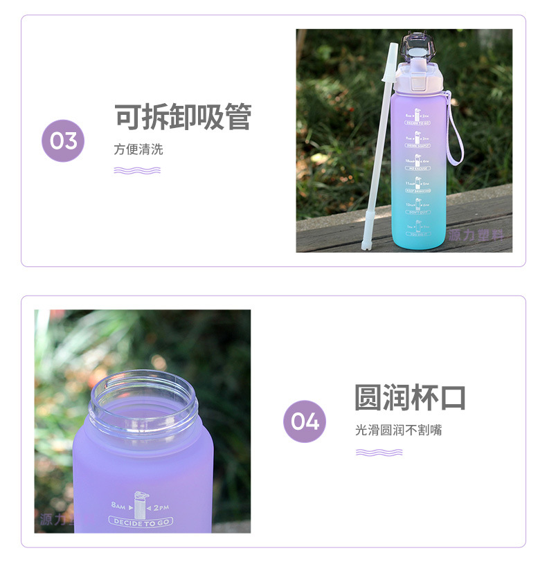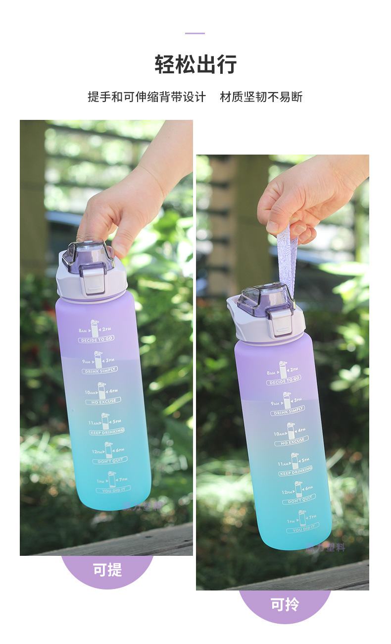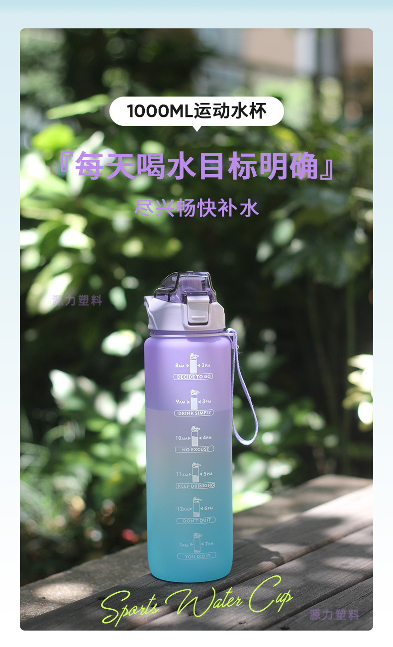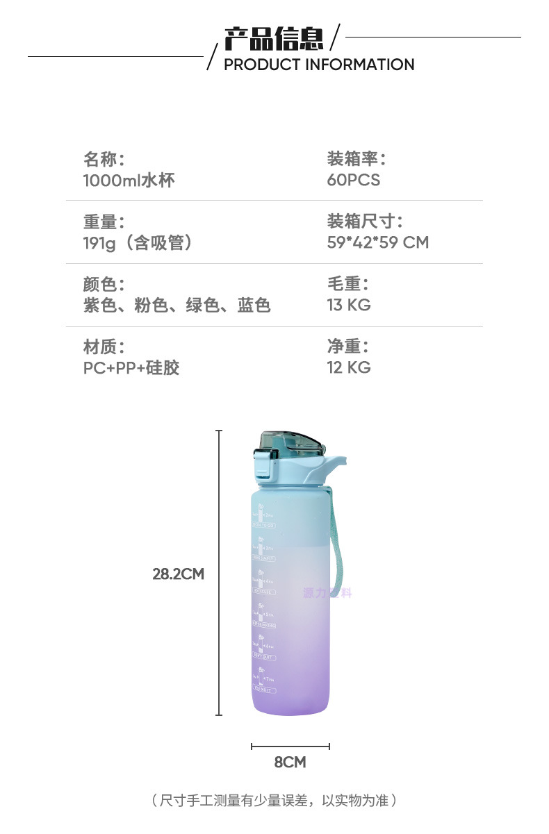 Gradiente de color botella de agua esmerilado espacio taza portátil cuerda boquilla de succión taza de agua 1000ml gimnasio deportes hervidor transfronterizo