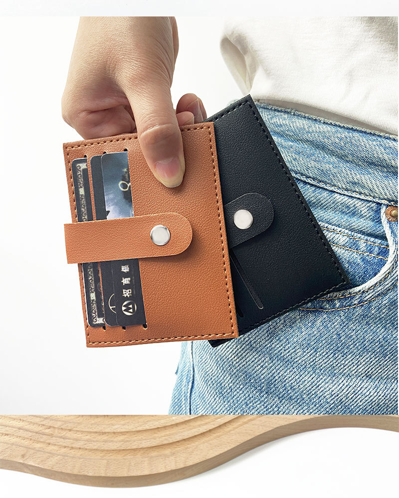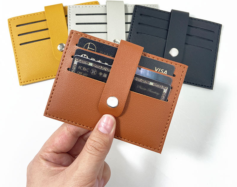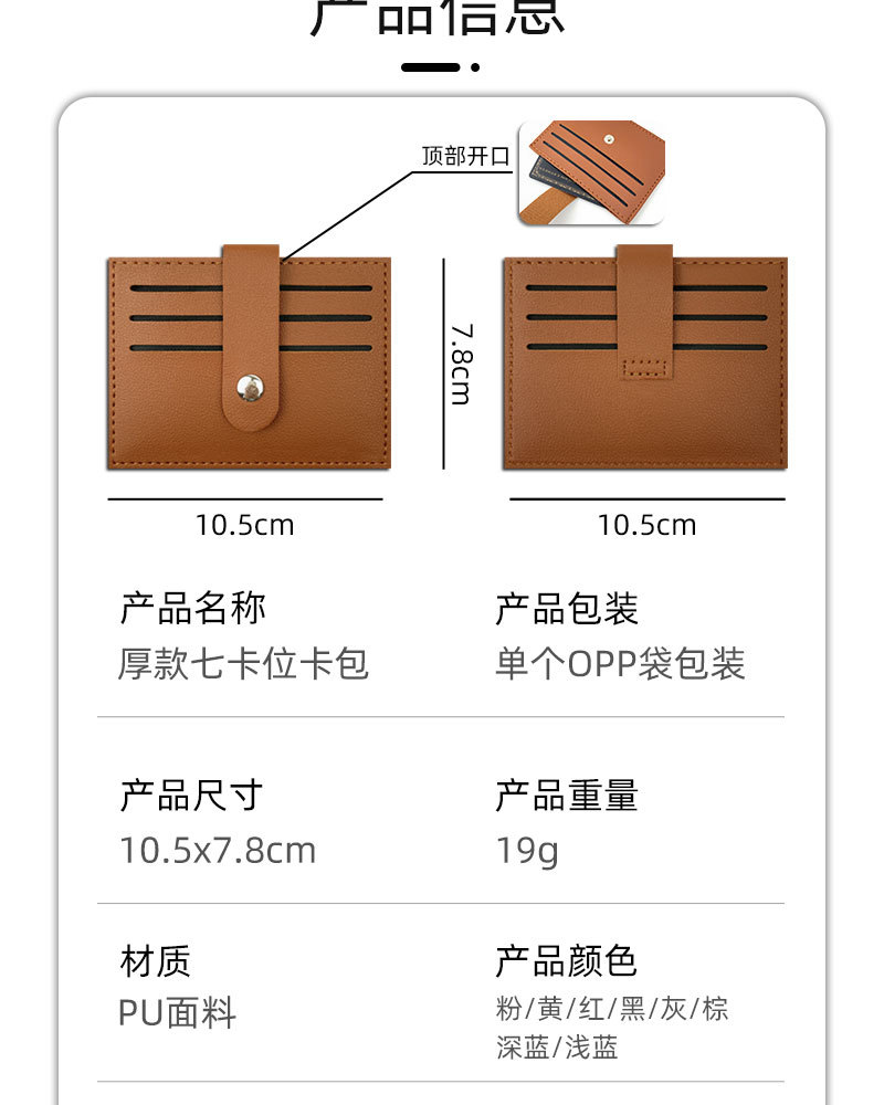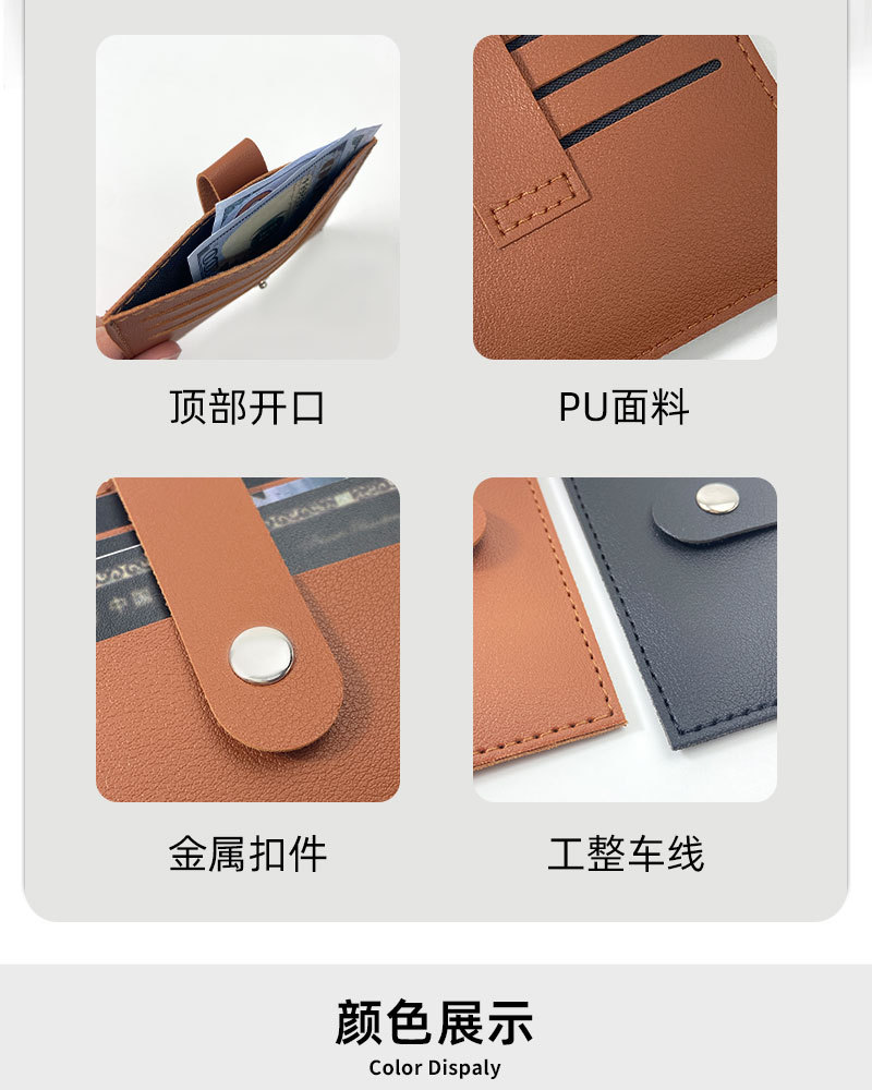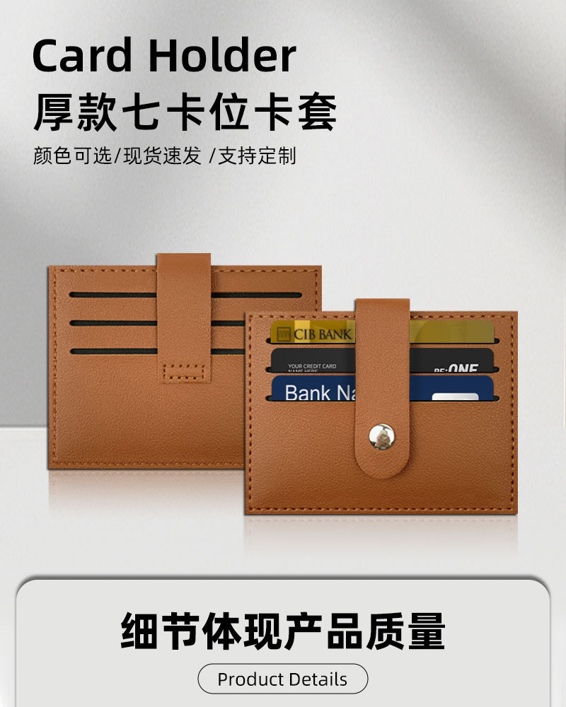 现货跨境四合扣加厚七卡位pu皮革卡包卡套皮质车缝线可定LOGO卡包