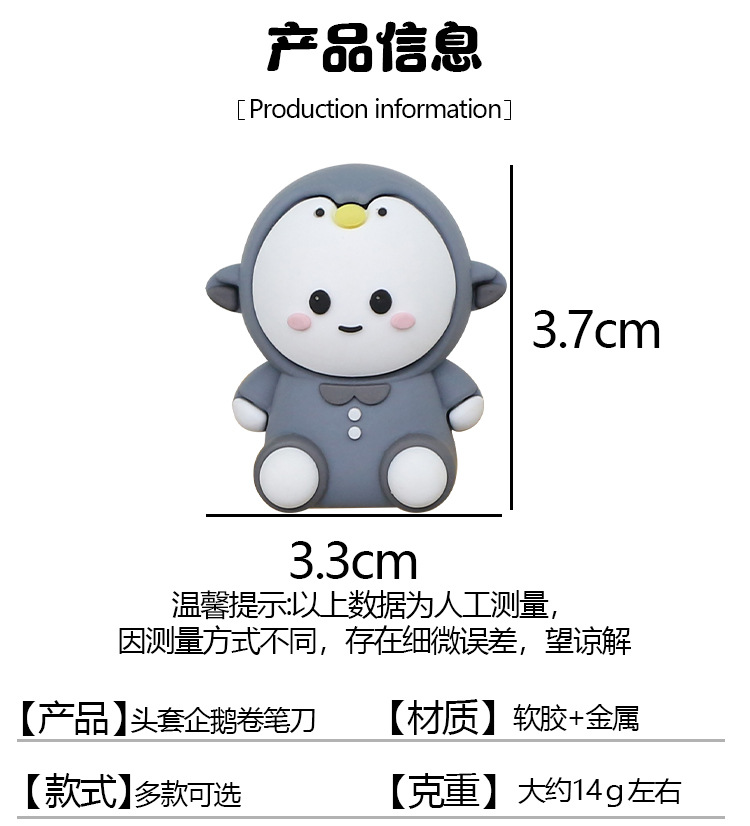 | Colores | Cuchillo sacapuntas gato amarillo para la cabeza (a granel),Portador de venado marrón con capucha (a granel),Cuchillo sacapuntas de cerdo rosa (a granel),Cuchillo sacapuntas de conejo rosa para la cabeza (a granel),Cuchillo para la cabeza Panda (a granel),Cuchillo de plumas pingüino con capucha (a granel),Sacapuntas gato amarillo para la cabeza (paquete opp),Sacapuntas de ciervo marrón con capucha (paquete opp),Cuchillo de pluma de cerdo rosa con cubierta para la cabeza (paquete opp),Sacapuntas de conejo en polvo para la cabeza (paquete opp),Cuchillo para la cabeza Panda Sacapuntas (paquete opp),Sacapuntas pingüino con capucha (paquete opp) |