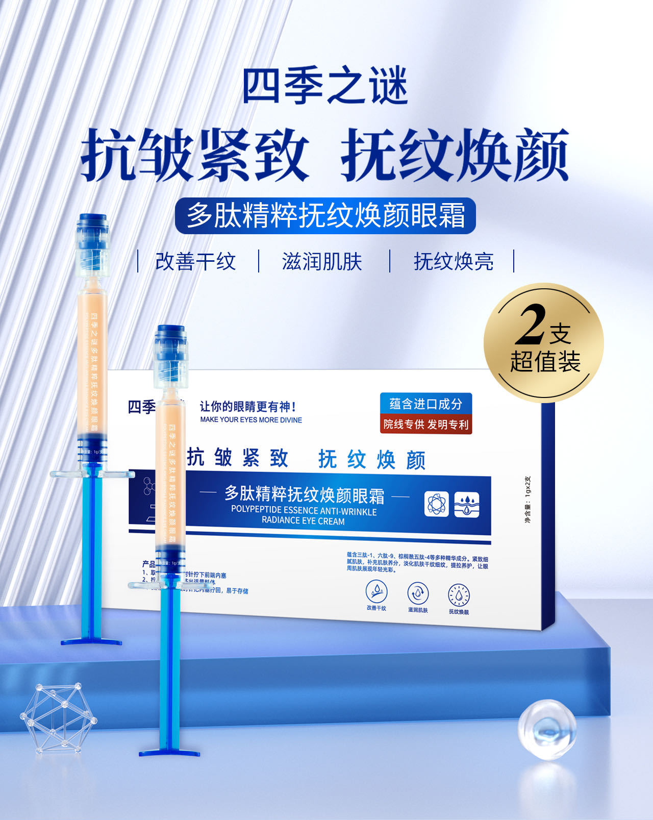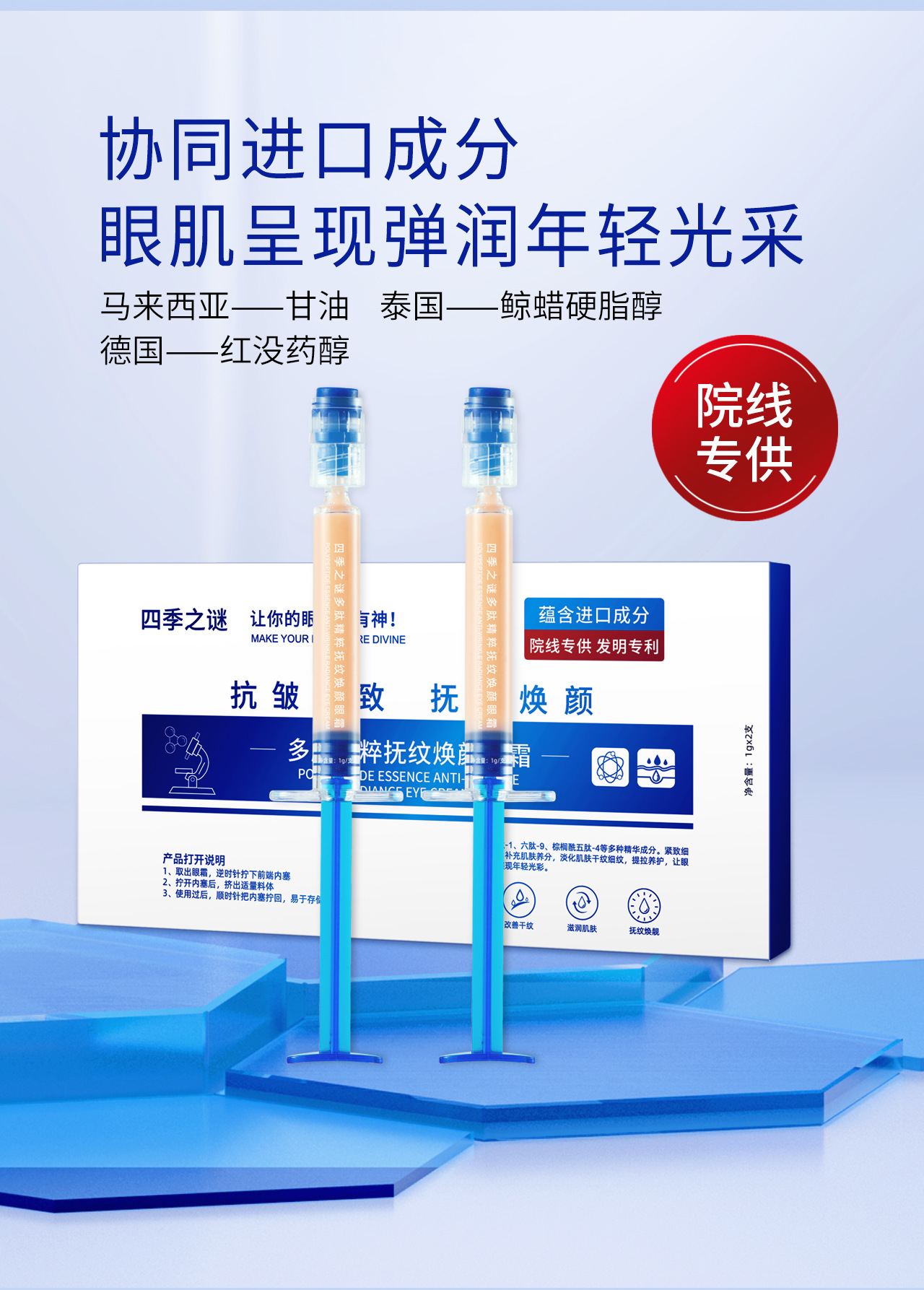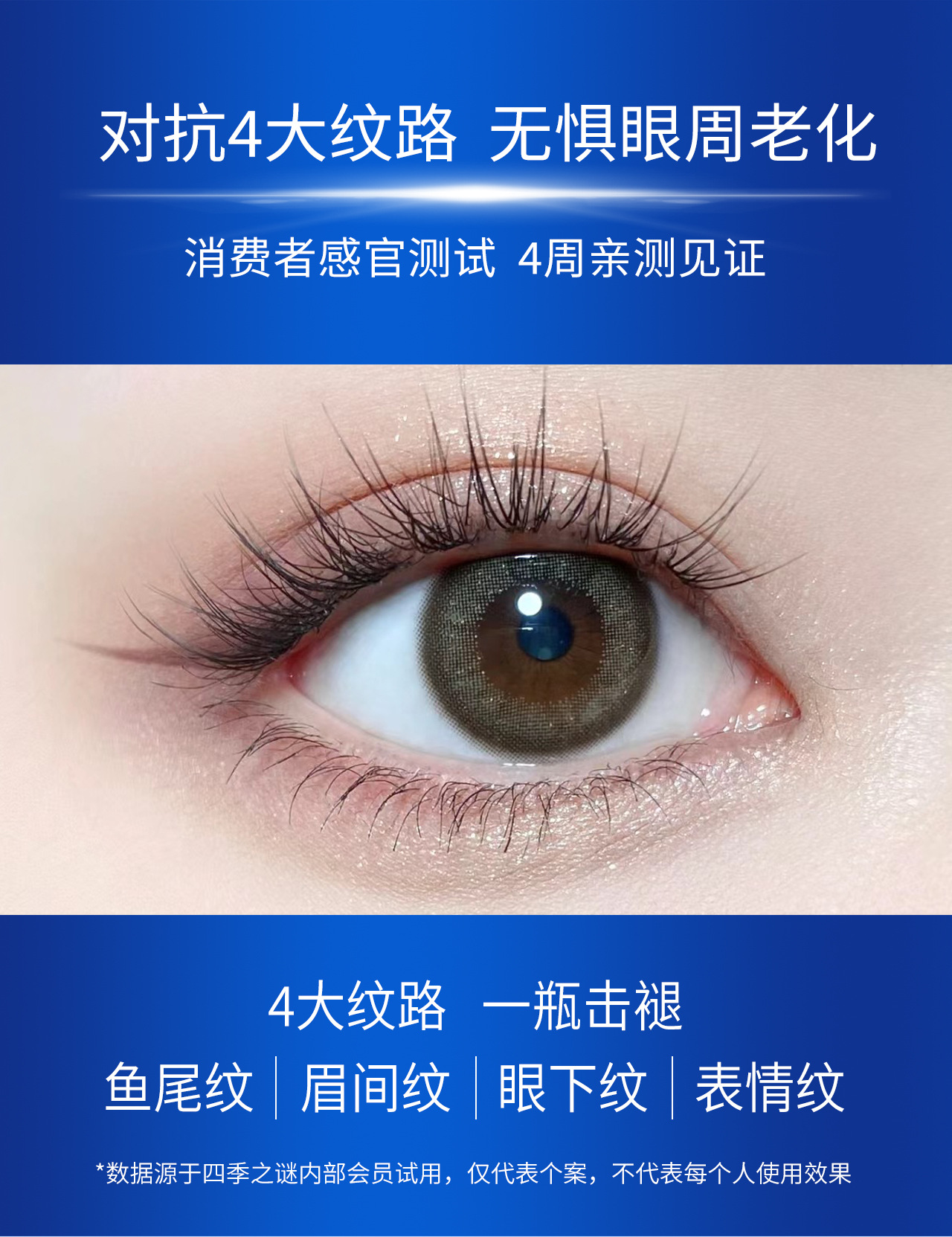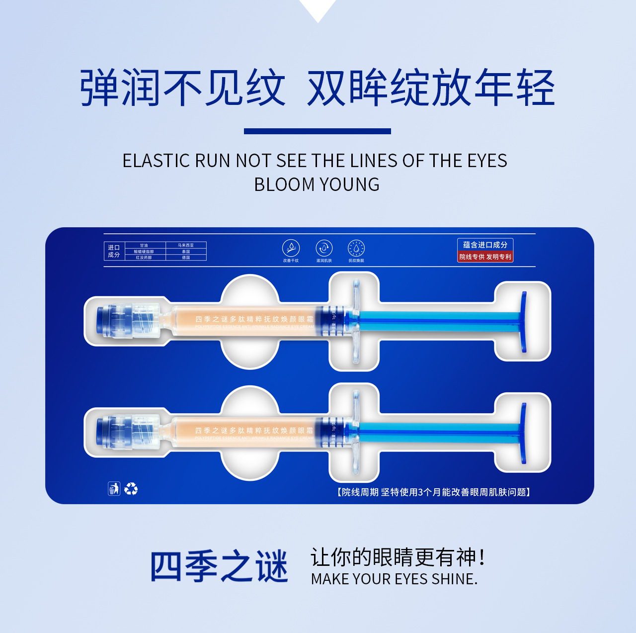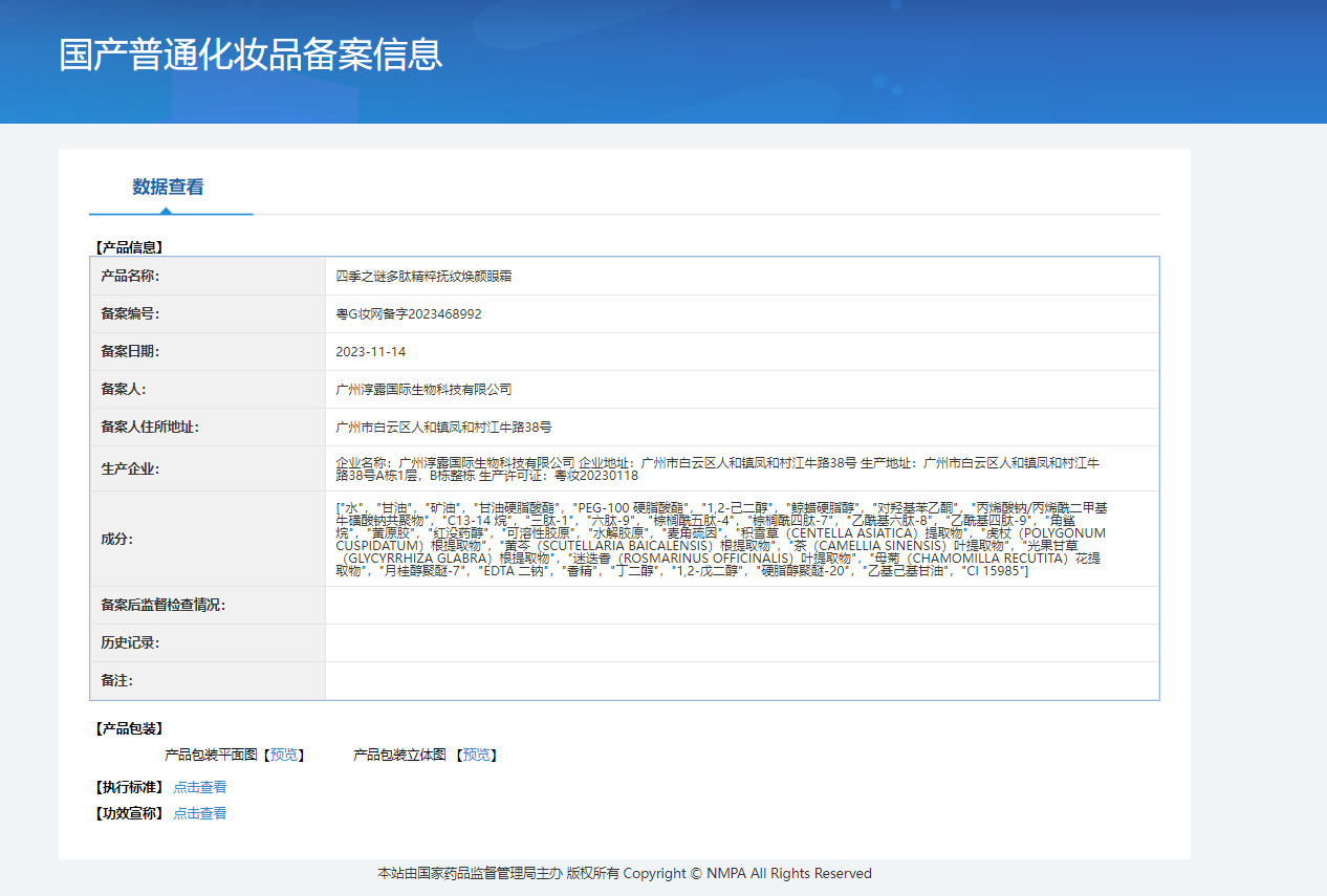 | Nombre del producto cosmético especial | El misterio de las cuatro estaciones, la esencia del péptido, acaricia las líneas y rejuvenece la crema para los ojos |
