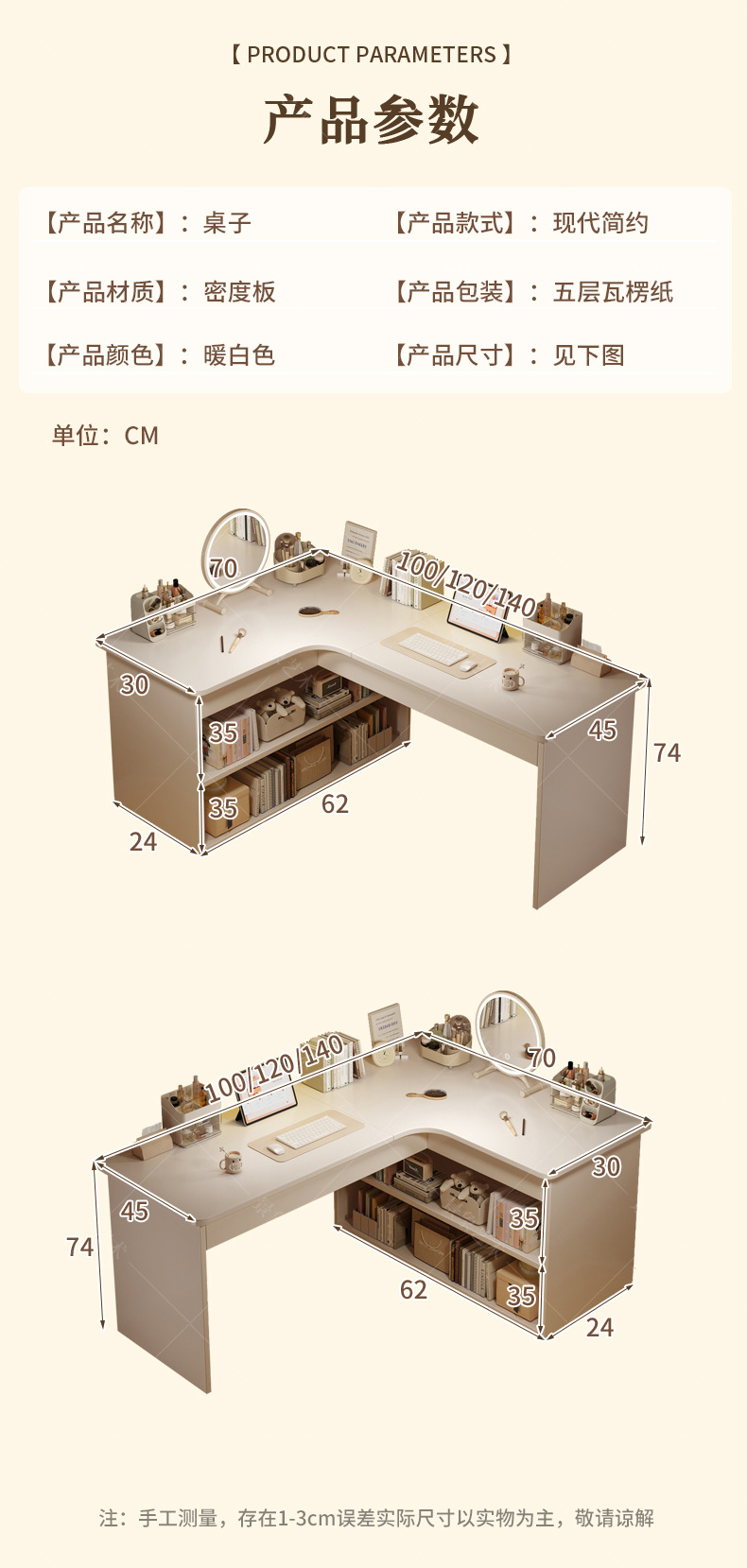 | Color | Blanco cálido 100cm Mesa izquierda, blanco cálido 100cm Mesa derecha, blanco cálido 120cm Mesa izquierda, blanco cálido 120cm Mesa derecha, blanco cálido 140cm Mesa izquierda, blanco cálido 140cm Mesa derecha |