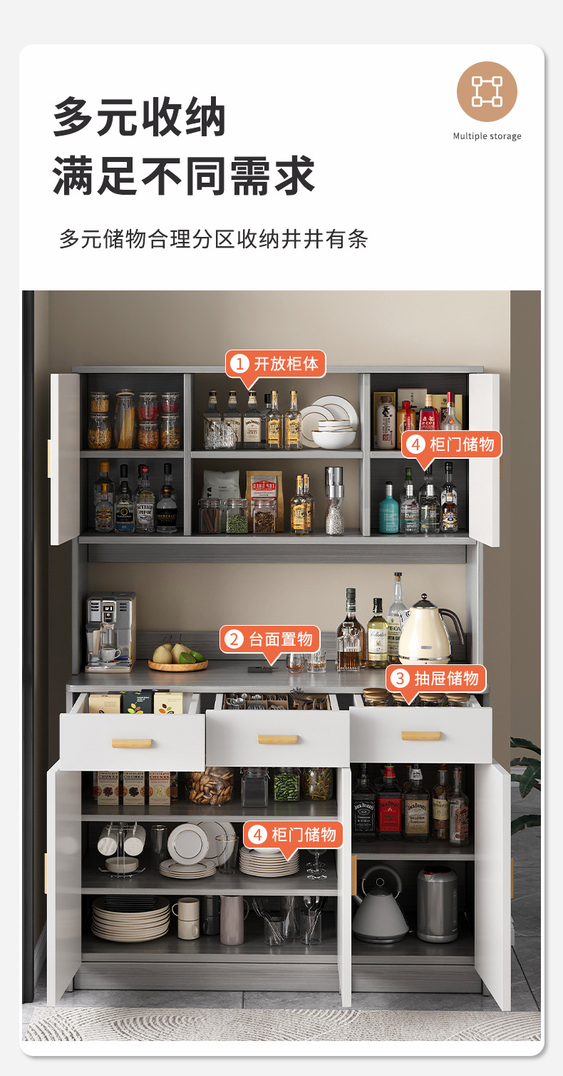 Aparador de cocina integrado para montar en la pared, con gran capacidad y puertas para almacenamiento, ideal para comedor, sala de estar y como mueble para el té.