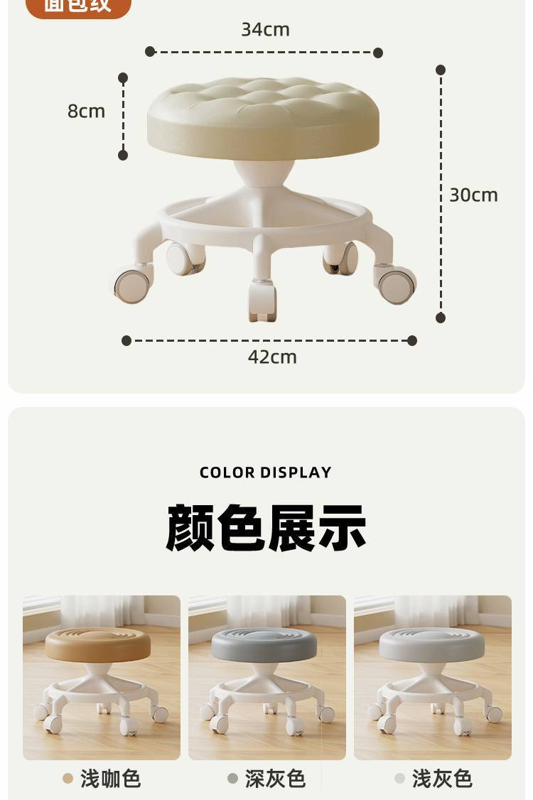 | Color | 防侧翻加固五爪:黑色面包纹【配】耐磨防刮轮,防侧翻加固五爪:橘色面包纹【配】耐磨防刮轮,防侧翻加固五爪:米咖面包纹【配】耐磨防刮轮,防侧翻加固五爪:浅咖面包纹【配】耐磨防刮轮,防侧翻加固五爪:深灰面包纹【配】耐磨防刮轮,防侧翻加固五爪:浅灰面包纹【配】耐磨防刮轮,防侧翻加固五爪:黑色面包纹【配】降噪包胶轮,防侧翻加固五爪:橘色面包纹【配】降噪包胶轮,防侧翻加固五爪:米咖面包纹【配】降噪包胶轮,防侧翻加固五爪:浅咖面包纹【配】降噪包胶轮,防侧翻加固五爪:深灰面包纹【配】降噪包胶轮,防侧翻加固五爪:浅灰面包纹【配】降噪包胶轮,防侧翻加固五爪:黑色面包纹【配】铁艺轴承轮,防侧翻加固五爪:橘色面包纹【配】铁艺轴承轮,防侧翻加固五爪:米咖面包纹【配】铁艺轴承轮,防侧翻加固五爪:浅咖面包纹【配】铁艺轴承轮,防侧翻加固五爪:深灰面包纹【配】铁艺轴承轮,防侧翻加固五爪:浅灰面包纹【配】铁艺轴承轮,防侧翻加固五爪:黑色面包纹【配】静音橡胶轮,防侧翻加固五爪:橘色面包纹【配】静音橡胶轮,防侧翻加固五爪:米咖面包纹【配】静音橡胶轮,防侧翻加固五爪:浅咖面包纹【配】静音橡胶轮,防侧翻加固五爪:深灰面包纹【配】静音橡胶轮,防侧翻加固五爪:浅灰面包纹【配】静音橡胶轮,防侧翻加固五爪:黑色水波纹【配】耐磨防刮轮,防侧翻加固五爪:橘色水波纹【配】耐磨防刮轮,防侧翻加固五爪:米咖水波纹【配】耐磨防刮轮,防侧翻加固五爪:浅咖水波纹【配】耐磨防刮轮,防侧翻加固五爪:深灰水波纹【配】耐磨防刮轮,防侧翻加固五爪:浅灰水波纹【配】耐磨防刮轮,防侧翻加固五爪:黑色水波纹【配】降噪包胶轮,防侧翻加固五爪:橘色水波纹【配】降噪包胶轮,防侧翻加固五爪:米咖水波纹【配】降噪包胶轮,防侧翻加固五爪:浅咖水波纹【配】降噪包胶轮,防侧翻加固五爪:深灰水波纹【配】降噪包胶轮,防侧翻加固五爪:浅灰水波纹【配】降噪包胶轮,防侧翻加固五爪:黑色水波纹【配】铁艺轴承轮,防侧翻加固五爪:橘色水波纹【配】铁艺轴承轮,防侧翻加固五爪:米咖水波纹【配】铁艺轴承轮,防侧翻加固五爪:浅咖水波纹【配】铁艺轴承轮,防侧翻加固五爪:深灰水波纹【配】铁艺轴承轮,防侧翻加固五爪:浅灰水波纹【配】铁艺轴承轮,防侧翻加固五爪:黑色水波纹【配】静音橡胶轮,防侧翻加固五爪:橘色水波纹【配】静音橡胶轮,防侧翻加固五爪:米咖水波纹【配】静音橡胶轮,防侧翻加固五爪:浅咖水波纹【配】静音橡胶轮,防侧翻加固五爪:深灰水波纹【配】静音橡胶轮,防侧翻加固五爪:浅灰水波纹【配】静音橡胶轮 |