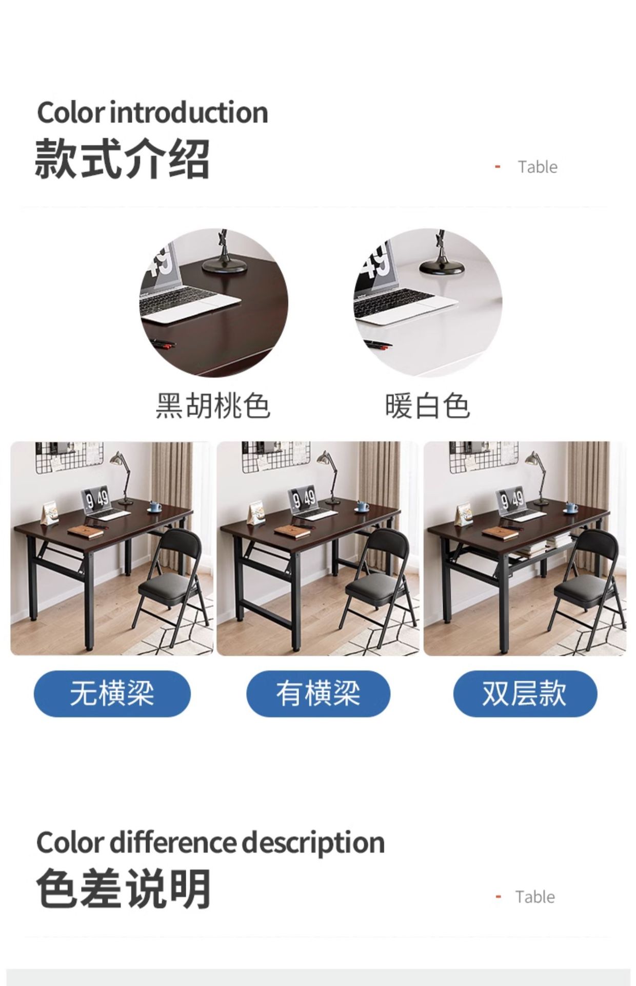 | Colores | Descuento especial, color nogal negro, ensamblaje de 80x40.,Blanco cálido 60*28*67cm [Estilo simple, no plegable],[Color nogal negro] Mejora el refuerzo sin agitar 100x60,[Color nogal negro] Mejora el refuerzo sin agitar 120x60,[Negro nogal] 80x40,[Negro nogal] 80x50,[Negro nogal] 80x60,[Negro nogal] 100x50,[Negro nogal] 120x40,[Negro nogal] 120x60,[Negro nogal] Doble capa 100x60,[Negro nogal] Doble capa 120x60,Combinación de mesa y silla [nogal negro] 80x50,Combinación de mesa y silla [nogal negro] 100x60,Combinación de mesa y silla [Black Walnut] 120x60,[Blanco cálido] 80x40,[Blanco cálido] 80x50,[Blanco cálido] 80x60,[Blanco cálido] 100x50,[Blanco cálido] 100x60,[Blanco cálido] 120x60,[Blanco cálido] Doble capa 120x60,[Blanco cálido] Doble capa 100x60,Blanco cálido 100x40 montaje,Blanco cálido 100x50 montaje,Blanco cálido 100x60 Montaje,Blanco cálido 120x40 Montaje,Blanco cálido 120x50 Montaje,Blanco cálido 120x60 Montaje,Muelles dobles mejorados y reforzados para mayor estabilidad, montaje de 120x60 en color nogal negro.,Montaje de nogal negro 80x40,Blanco cálido 80x50 ensamblado,Blanco cálido 80x40 Montaje |