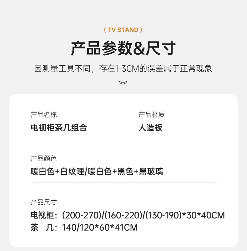 | Color | [precio especial] telescópico bidireccional (160 - 220) cm blanco cálido + textura blanca; Montaje, [especial] telescópico bidireccional (160 - 220) cm blanco cálido + textura blanca, [especial] telescópico bidireccional (200 - 270) cm blanco cálido + textura blanca; Montaje, [especial] telescópico bidireccional (200 - 270) cm blanco cálido + textura blanca, [engrosado] telescópico unidireccional (130 - 190) cm blanco cálido + textura blanca; Montaje, [modelo engrosado] telescópico unidireccional (130 - 190) cm blanco cálido + textura blanca, [modelo engrosado] telescópico bidireccional (160 - 220) cm blanco cálido + textura blanca; Montaje, [modelo engrosado] telescópico bidireccional (160 - 220) cm blanco cálido + textura blanca, [modelo engrosado] telescópico bidireccional (200 - 270) cm blanco cálido + textura blanca; Montaje, [modelo engrosado] telescópico bidireccional (200 - 270) cm blanco cálido + textura blanca, [cuatro modelos] telescópico bidireccional (160 - 240) cm blanco y negro + vidrio negro; Montaje, [cuatro modelos] telescópico bidireccional (160 - 240) cm en blanco y negro + vidrio negro, [seis modelos] telescópico bidireccional, [seis modelos] telescópico bidireccional 60 - 24 en blanco y negro, telescópico (130 - 190) cm Gabinete de televisión + Mesa de café de vidrio templado de 1,2 metros; Montaje, Gabinete de televisión telescópico (130 - 190) cm + Mesa de café de vidrio templado de 1,2 metros, Gabinete de televisión telescópico (160 - 220) cm + Mesa de café de vidrio templado de 1,2 metros; Montaje, Gabinete de televisión telescópico (160 - 220) cm + Mesa de café de vidrio templado de 1,2 metros, [mesa de café de vidrio templado] 120cm de grano de mármol blanco; Montaje, [mesa de café de vidrio templado] 120cm de grano de mármol blanco, [mesa de café de vidrio templado] 140cm de grano de mármol blanco; Montaje, [mesa de café de vidrio templado] 140 cm de grano de mármol blanco |