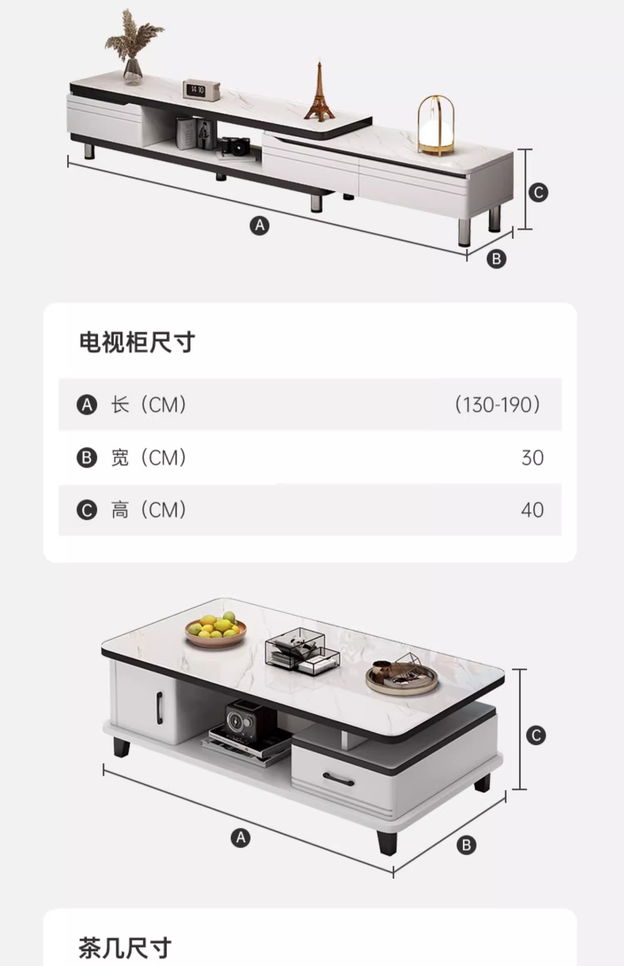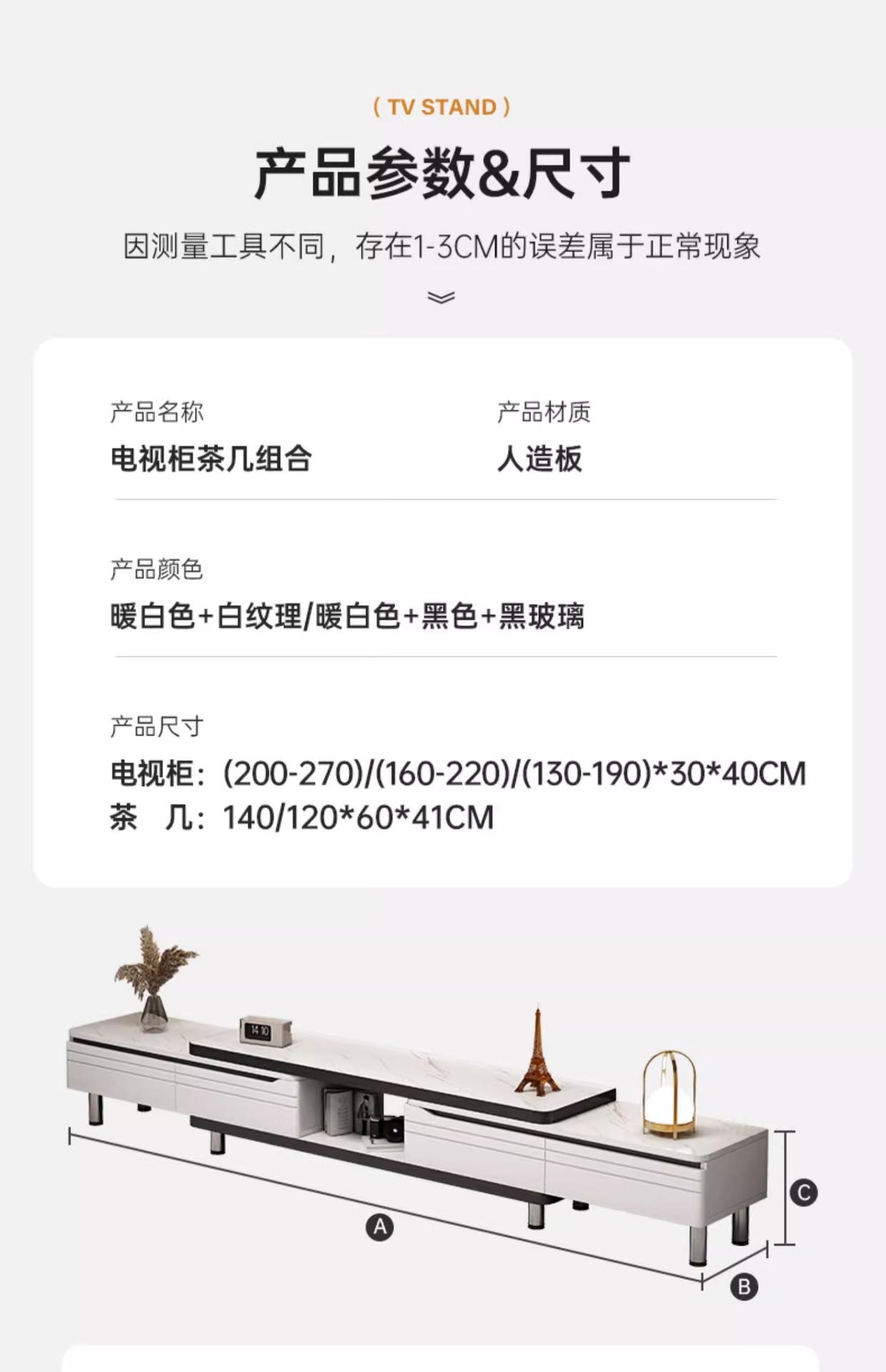 | Colores | [Mesa de centro de encimera de losa de roca] Patrón de mármol blanco de 120cm; montaje,[Mesa de centro de encimera de losa de roca] Patrón de mármol blanco de 140cm; montaje,[Modelo de placa de roca] Extracción unidireccional (130-190)cm blanco cálido textura blanca; montaje,[Modelo de placa de roca] dos vías telescópicas (160-220)cm blanco cálido textura blanca; montaje,[Modelo de placa de roca] dos vías telescópicas (200-270)cm blanco cálido textura blanca; montaje,[Losa de roca] Mueble de TV telescópico (130-190)cm Mesa de centro de placa de roca de 1,2 m; montaje,[Losa de roca] Mueble de TV telescópico (160-220)cm Mesa de centro de placa de roca de 1,2 m; montaje,[Losa de roca] Mueble de TV telescópico (200-270)cm Mesa de centro de placa de roca de 1,2 m; montaje,[Losa de roca] Mueble de TV telescópico (130-190)cm Mesa de centro de losa de roca de 1,4 m; montaje,[Losa de roca] Mueble de TV telescópico (200-270)cm Mesa de centro de losa de roca de 1,4 m; montaje |