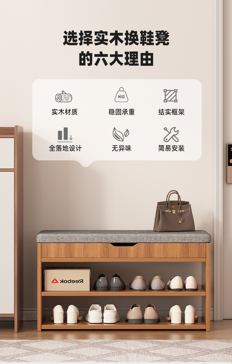ModeloNuevo - 0067 taburete de cambio de zapatos de madera maciza
