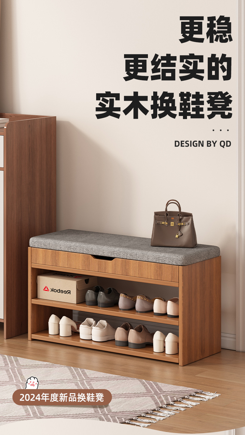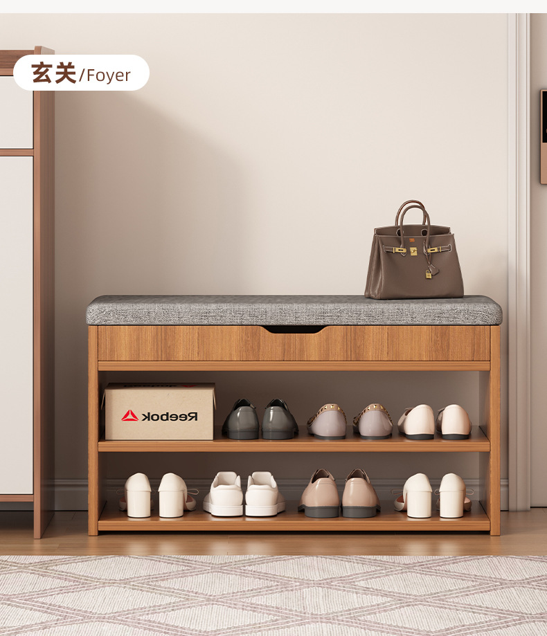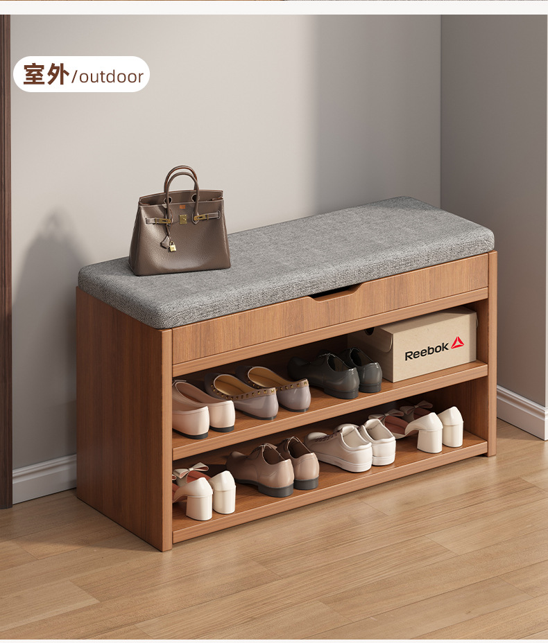 Estante de zapatos de madera sólida puerta doméstica interior multicapa simple pequeño armario de zapatos estrecho almacenar en la puerta se puede sentar para cambiar el taburete de zapatos