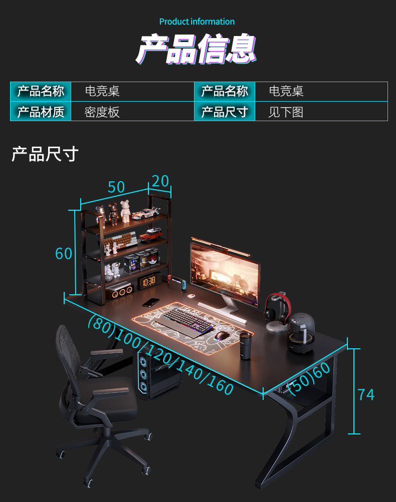 Escritorio de la computadora escritorio del hogar escritorio del dormitorio estudiante Escritorio de estudio Internet celebridad e-sports mesa escritorio simple