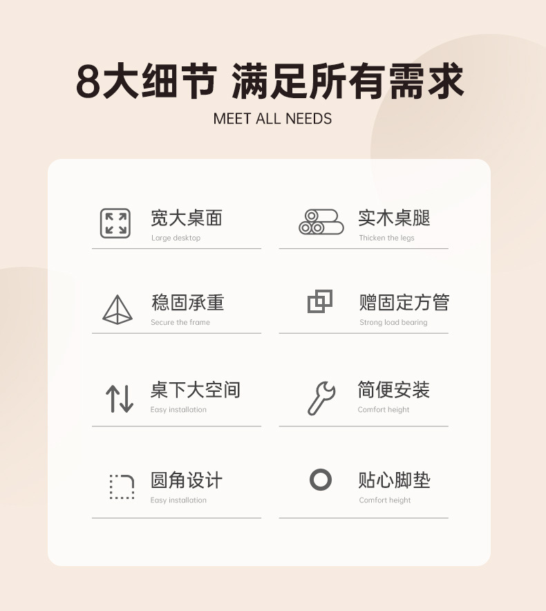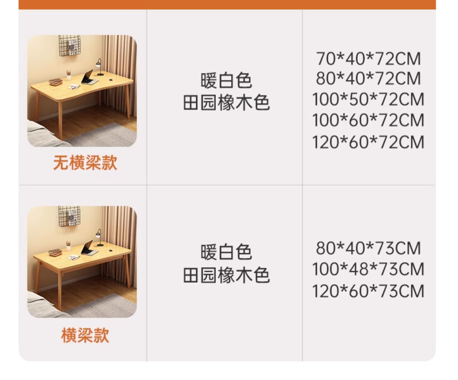 | Color | 暖白色80*40CM | 加粗实木腿,橡木色80*40CM | 加粗实木腿,暖白色80*50CM | 加粗实木腿,橡木色80*50CM | 加粗实木腿,暖白色100*50CM | 加粗实木腿,橡木色100*50CM | 加粗实木腿,暖白色100*60CM | 加粗实木腿,原木色100*60CM | 加粗实木腿,暖白色120*60cm | 加粗实木腿,【外贸品质弧形款】橡木色100*60CM | 加粗实木腿,【外贸品质弧形款】暖白色120*60CM | 加粗实木腿,【外贸品质弧形款】橡木色120*60CM | 加粗实木腿,【外贸品质承重翻倍】【加粗实木腿】暖白色80*50CM,【外贸品质承重翻倍】【加粗实木腿】橡木色80*50CM,【外贸品质承重翻倍】【赠送固定方管】暖白色100*60CM,【外贸品质承重翻倍】【赠送固定方管】橡木色100*60CM,【外贸品质承重翻倍】【赠送固定方管】暖白色120*60CM,【外贸品质承重翻倍】【赠送固定方管】橡木色120*60CM,【福利款组合款】橡木色80cm【桌子+牛角椅组合】,【福利款组合款】暖白色80cm【桌子+牛角椅组合】,【福利款组合款】暖白色100cm【桌子+牛角椅组合】,【福利款组合款】橡木色100cm【桌子+牛角椅组合】,【福利款组合款】暖白色100*60CM【桌子+牛角椅组合】,【福利款组合款】田园橡木色100*60CM【桌子+牛角椅组合】,【福利款组合款】暖白色120*60cm【桌子+牛角椅组合】,【福利款组合款】原木色120*60cm【桌子+牛角椅组合】,原木色100*55CM|加粗实木腿,原木色120*55CM|加粗实木腿,原木色140*55CM|加粗实木腿,原木色100*60CM | 纯实木打造,原木色120*60CM | 纯实木打造,原木色140*60CM | 纯实木打造 |
