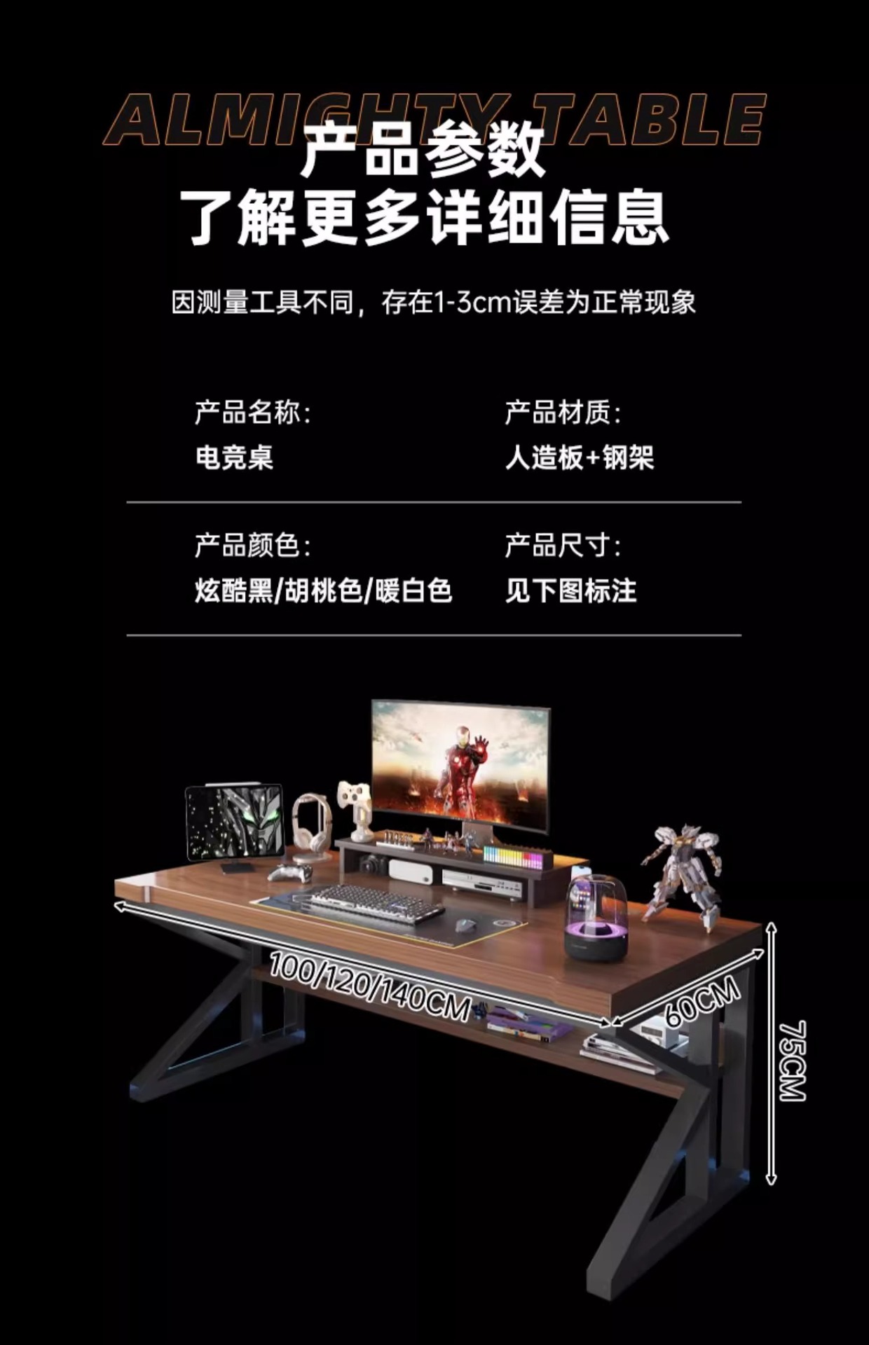 | Color | [modelo de imagen principal] elegante negro 120 * 60cm, [modelo de imagen principal] elegante negro 140 * 60cm, [mesa de 30 mm] xuanku negro 100 * 60cm, [mesa de 30 mm] Walnut color 100 * 60cm, [mesa de 30 mm] Walnut color 140 * 60cm, [mesa de 30 mm] Walnut color 160 * 60cm, [mesa de 30 mm] xuanku negro 180 * 70cm, [mesa de 30 mm] Walnut color 180 * 70cm, [combinación de mesa y silla] xuanku negro 100 * 60cm, [combinación de mesa y silla de Walnut color] [combinación de mesa y silla de Walnut color 140 * 60cm, [combinación de mesa y silla de Walnut color]160 * 60cm, [combinación de mesas y sillas] xuanku Black 180 * 70cm, [combinación de mesas y sillas] Walnut 180 * 70cm |