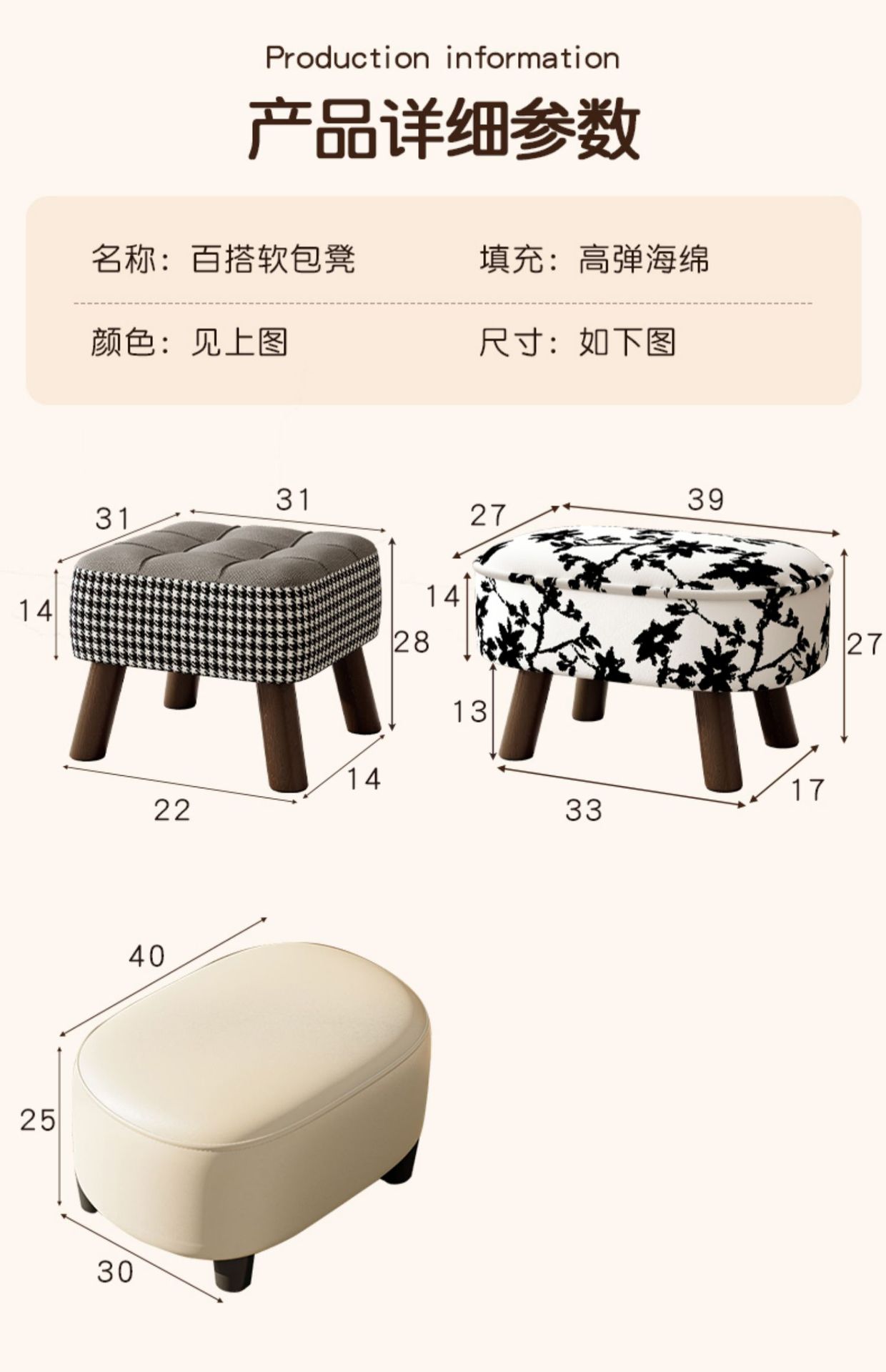| Colores | [Imagen principal del mismo estilo/Especial de flotabilidad] Taburete redondo blanco de flores,[Imagen principal del mismo estilo/críticas favorables] Taburete redondo pequeño con tinta negra,[Cuero delicado/agradable para la piel y resistente al desgaste] Blanco crema,[Cuero delicado/agradable para la piel y resistente al desgaste] Amarillo jengibre,[Cuero delicado/agradable para la piel y resistente al desgaste] Polen de cereza,[Cuero delicado/agradable para la piel y resistente al desgaste] azul pavo real,[Cuero delicado/agradable para la piel y resistente al desgaste] Café marrón,[Cuero delicado/agradable para la piel y resistente al desgaste] Verde oscuro,[Bolsa blanda gruesa de madera maciza importada/3D] taburete cuadrado pequeño de pata de gallo gris,[Bolsa blanda gruesa de madera maciza importada/3D] Taburete cuadrado pequeño de pata de gallo color café,[Bolsa blanda gruesa de madera maciza importada/3D] Taburete cuadrado pequeño de pata de gallo beige,[Bolsa blanda gruesa de madera maciza importada/3D] Taburete cuadrado pequeño de pata de gallo verde,[Bolsa blanda gruesa de madera maciza importada/3D] Taburete cuadrado pequeño de pata de gallo naranja,[Bolsa blanda gruesa de madera maciza importada/3D] Taburete cuadrado pequeño de pata de gallo cian,[Patas de taburete de madera maciza/superficie de tela desmontable] gris 25cm,[Patas de taburete de madera maciza/superficie de tela desmontable] azul 25cm,[Patas de taburete de madera maciza/superficie de tela desmontable] verde frijol 25cm,[Patas de taburete de madera maciza/superficie de tela desmontable] beige 25cm,[Patas de taburete de madera maciza/superficie de tela desmontable] 25cm de beige,[Patas de taburete de madera maciza/superficie de tela desmontable] rosa roja 25cm,[Patas de taburete de madera maciza/superficie de tela desmontable] Morado 25cm |
