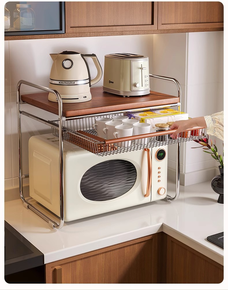 | Colores | [Tablero de madera maciza completo] Estante de microondas grande,[Tablero de madera maciza completo] Estante de microondas grande con cesta de tracción |