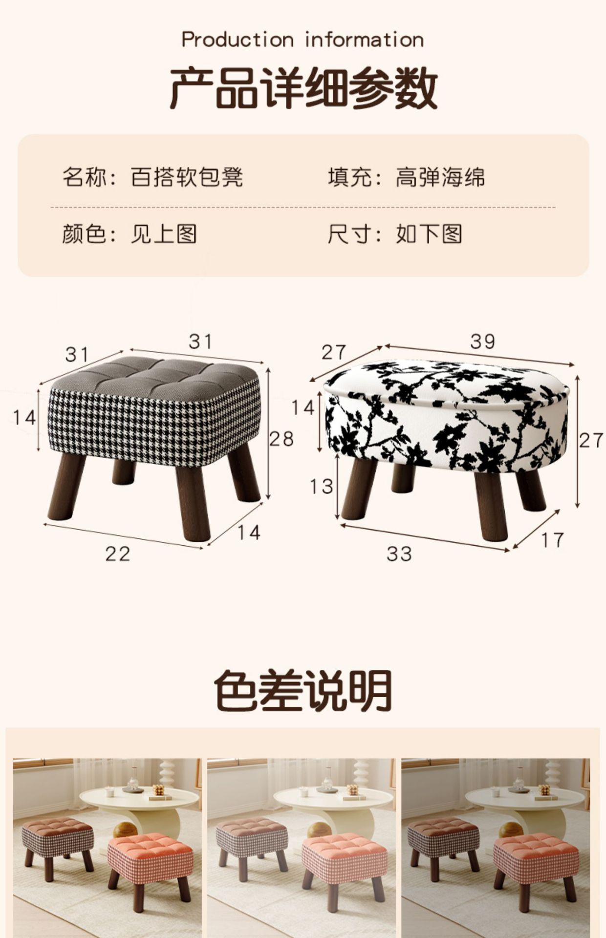 | Colores | [Madera maciza de calidad/terciopelo de nieve suave] Taburete redondo pequeño blanco con ramas de flores,[Madera maciza de calidad/terciopelo de nieve suave] Taburete redondo pequeño negro con tinta,[Imagen principal del mismo estilo/críticas favorables] Taburete cuadrado pequeño de pata de gallo blanco,[Madera maciza de calidad/terciopelo de cobana de nieve suave] taburete cuadrado pequeño de pata de gallo cian,[Madera maciza de calidad/terciopelo de copos de nieve suave] taburete cuadrado pequeño de pata de gallo verde,[Madera maciza de calidad/terciopelo de cobana de nieve suave] taburete cuadrado pequeño de pata de gallo naranja,[Madera maciza de calidad/terciopelo de copos de nieve suave] taburete cuadrado pequeño de pata de gallo gris,[Calidad de madera maciza/terciopelo de cobana de nieve suave] taburete cuadrado pequeño de pata de gallo de color café |