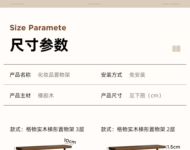 | Tamaño | El grano de madera es delicado y tiene una fuerte capacidad de carga. |