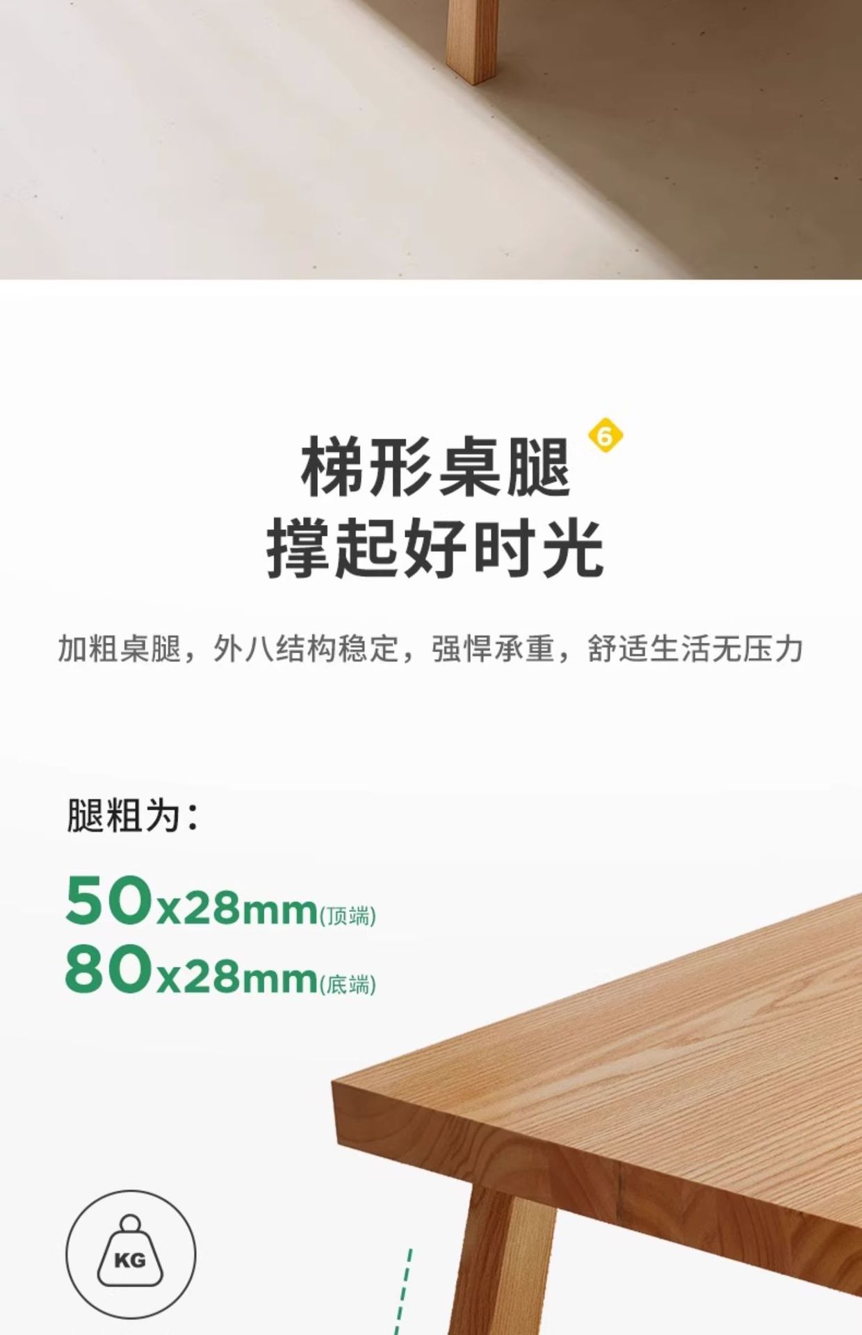 | Tamaño | La estructura en forma de I engrosa las piernas de la Mesa |